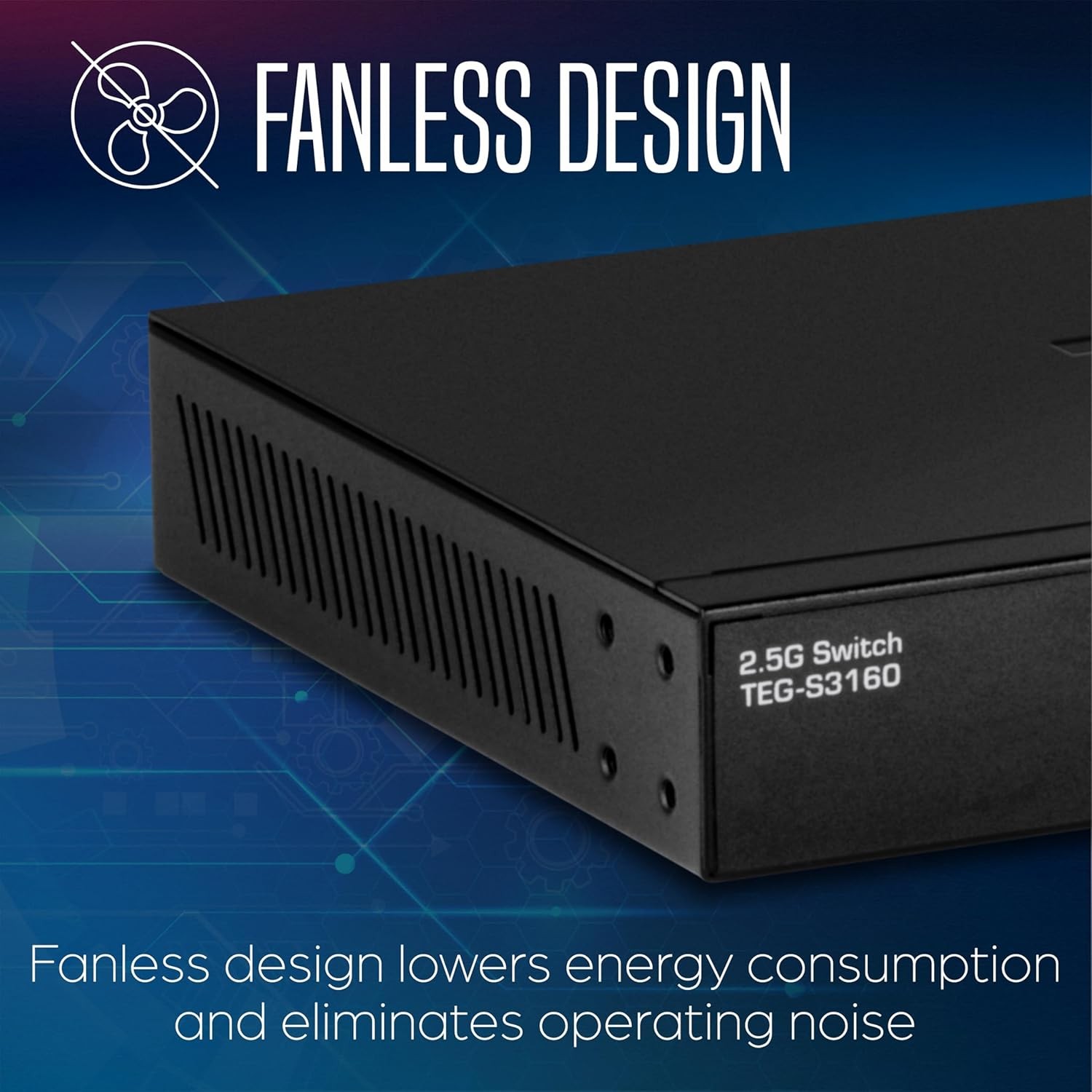 or better cabling. Each high-speed 2.5G switch features a durable metal enclosure and can be mounted to the wall for setup flexibility.