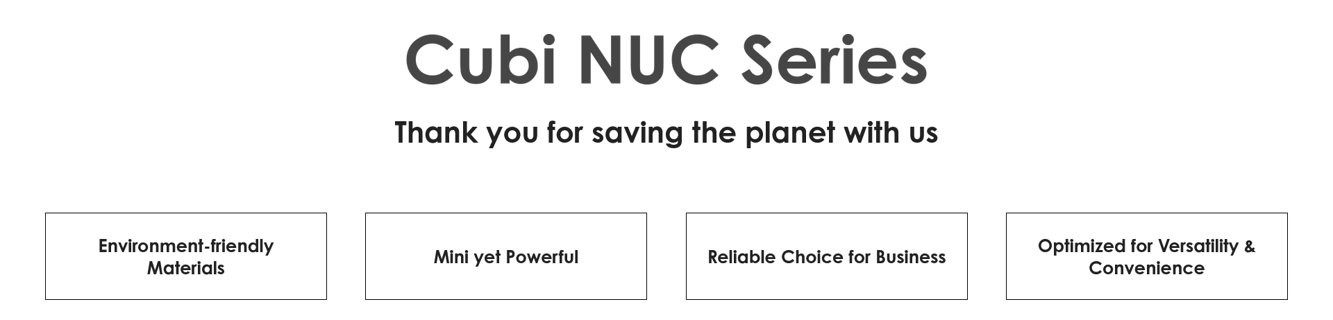 Our commitment extends to incorporating sustainable materials in both our product design and packaging, all of which hold certifications from EPEAT and ENERGY STAR®. The Cubi NUC Series embodies sustainable value and heightened productivity.