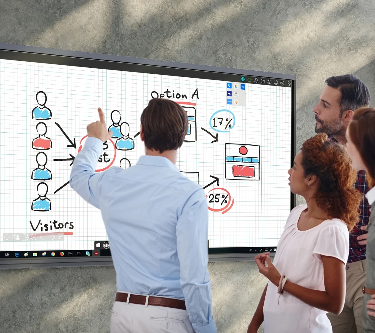 ViewSonic TeamOne™ software transforms this massive touchscreen into an infinite digital whiteboard. This intuitive and secure suite empowers teams anywhere to collaborate in real-time with limitless space. Sketch freely, annotate ideas, share documents and images – all without ever running out of room. TeamOne fosters boundless creativity and productivity for the modern team.