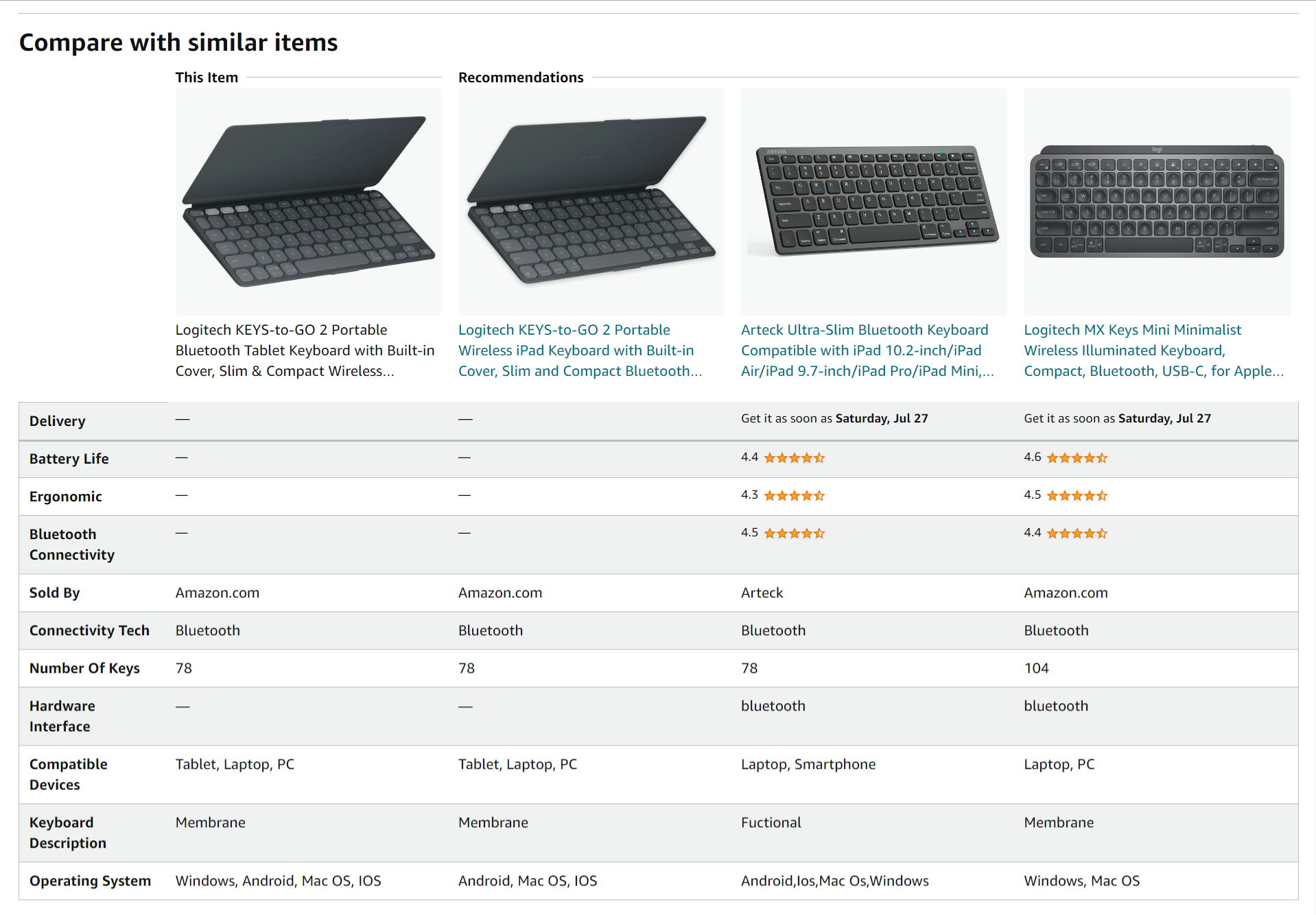 Made with recycled plasticThe plastic parts in Keys-To-Go 2 include certified post-consumer recycled plastic—36% for Graphite and Pale Grey, and 33% for Lilac—to give a second life to end-of-life plastic from old consumer electronics and help reduce our carbon footprint.* *Excludes packaging and printed circuit board (PCB). |