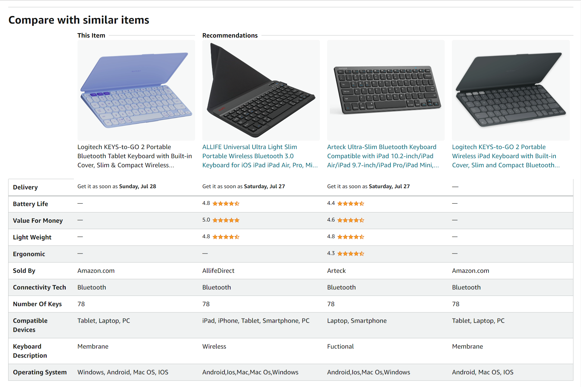 Made with recycled plasticThe plastic parts in Keys-To-Go 2 include certified post-consumer recycled plastic—36% for Graphite and Pale Grey, and 33% for Lilac—to give a second life to end-of-life plastic from old consumer electronics and help reduce our carbon footprint.* *Excludes packaging and printed circuit board (PCB). |