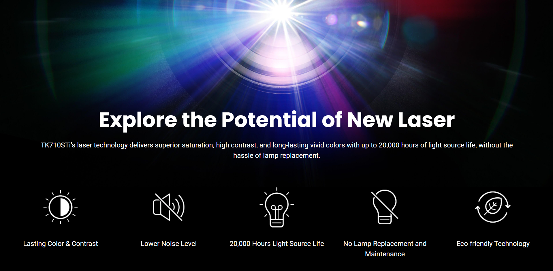 BenQ's Dynamic Function adjusts the light source, enhancing contrast and depth perception. The TK710STi's responsive laser light ensures stable brightness transitions, rendering crystal-clear details in every scene.