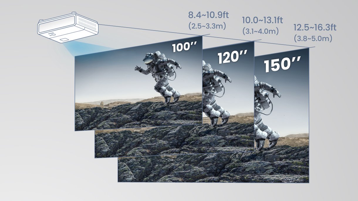 1.3x zoom maximizes available space with a range of throw distances for big-screen entertainment without the hassle of complicated installation