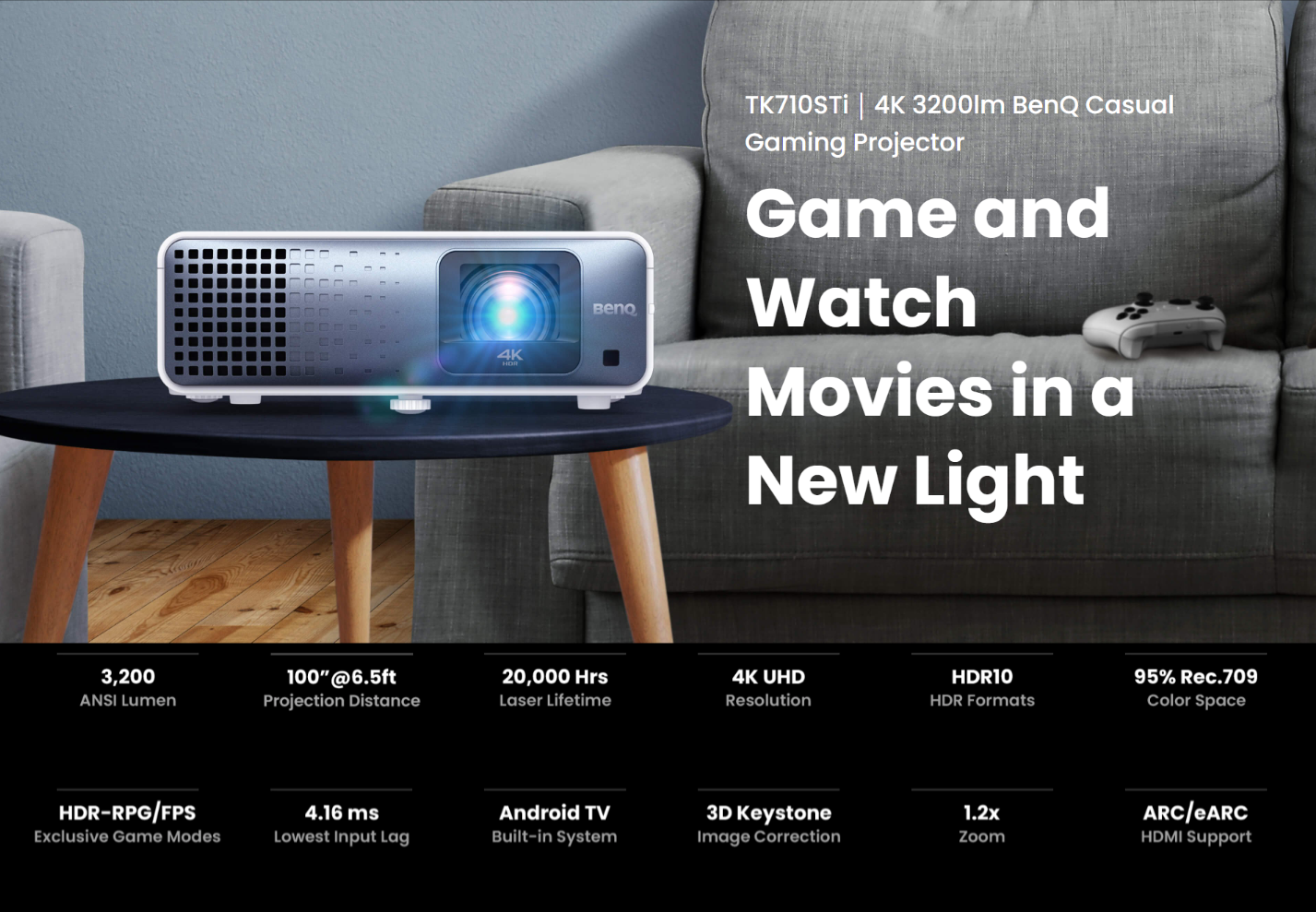 BenQ lets you game on your terms. Whether it’s on a PS5/PS4, Switch, or Xbox Series X, dual HDMI 2.0b universal connectivity has you covered. (HDMI 2.0b 4K@60Hz / 1080p@120Hz compatible) Additionally, eARC enables 7.1-channel and Dolby Atmos audio to transmit unaltered full-resolution signals to your sound system through a single HDMI cable.