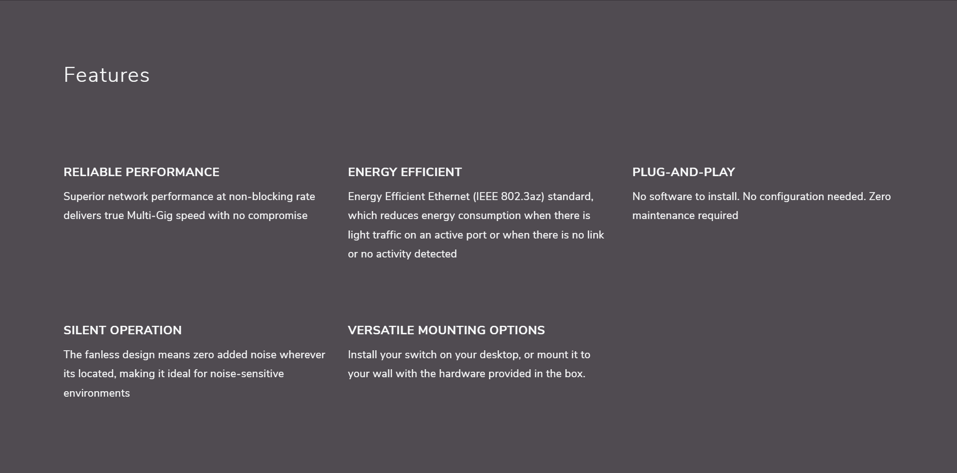 The NETGEAR 8-port 2.5G Multi-Gigabit Unmanaged Switch, MS308, offers businesses an affordable solution to upgrade their networks to multi-gig speeds. Featuring eight (8) 2.5G ports encased in durable metal, the MS308 Multi-Gigabit Ethernet Switch is designed for versatility—it can be placed on a desk, mounted on a wall, or under a table using the included kit.