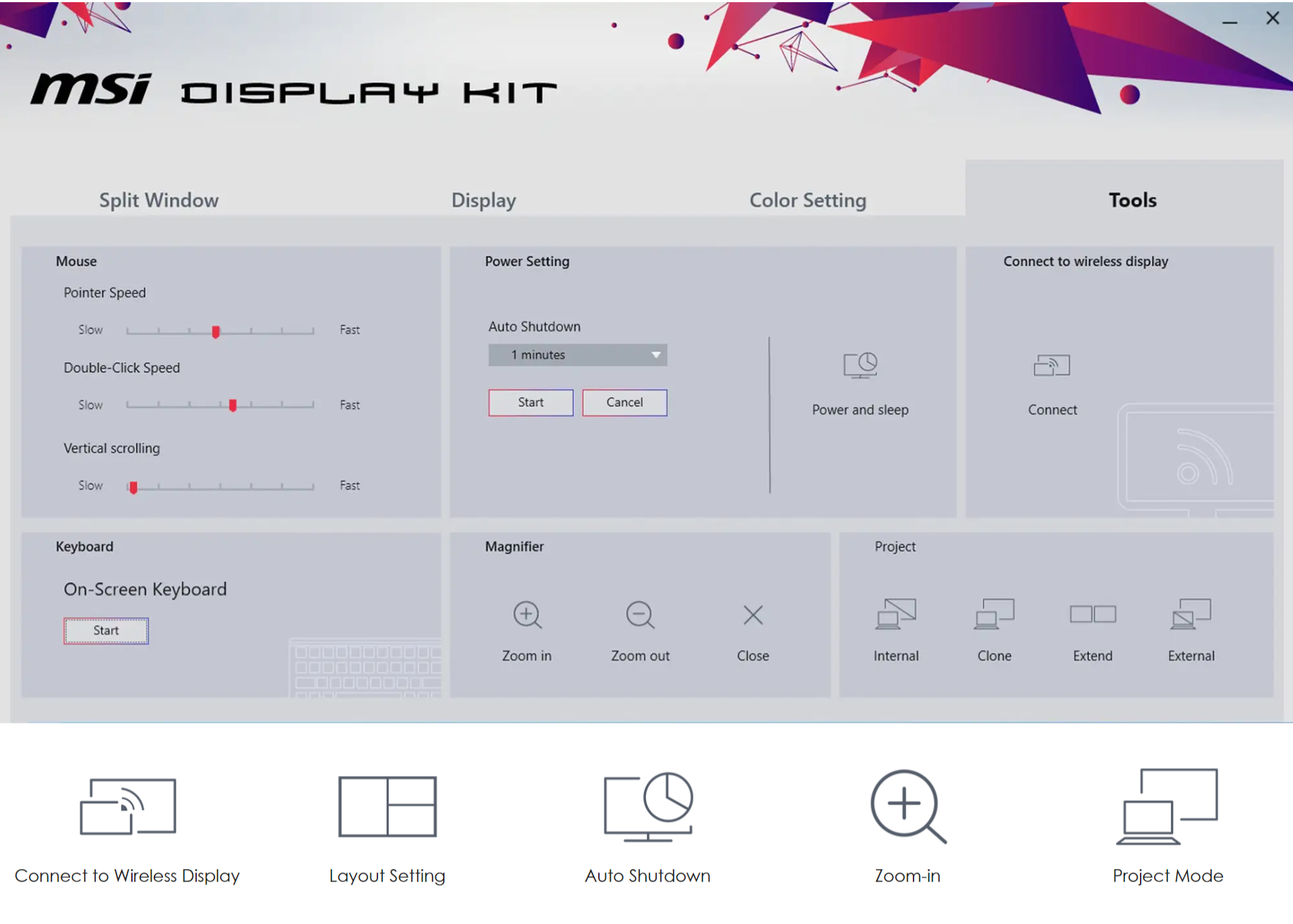 The MSI exclusive software Display Kit provides the most convenient tool, the proper display that allows you to read and enjoy the image at the same time & color mode to you while working or everyday.