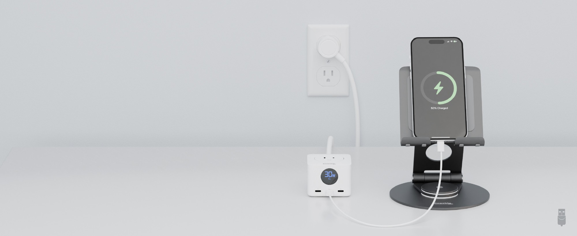 Charge an iPhone 15 to 50% in 26 minutes through USB-C.