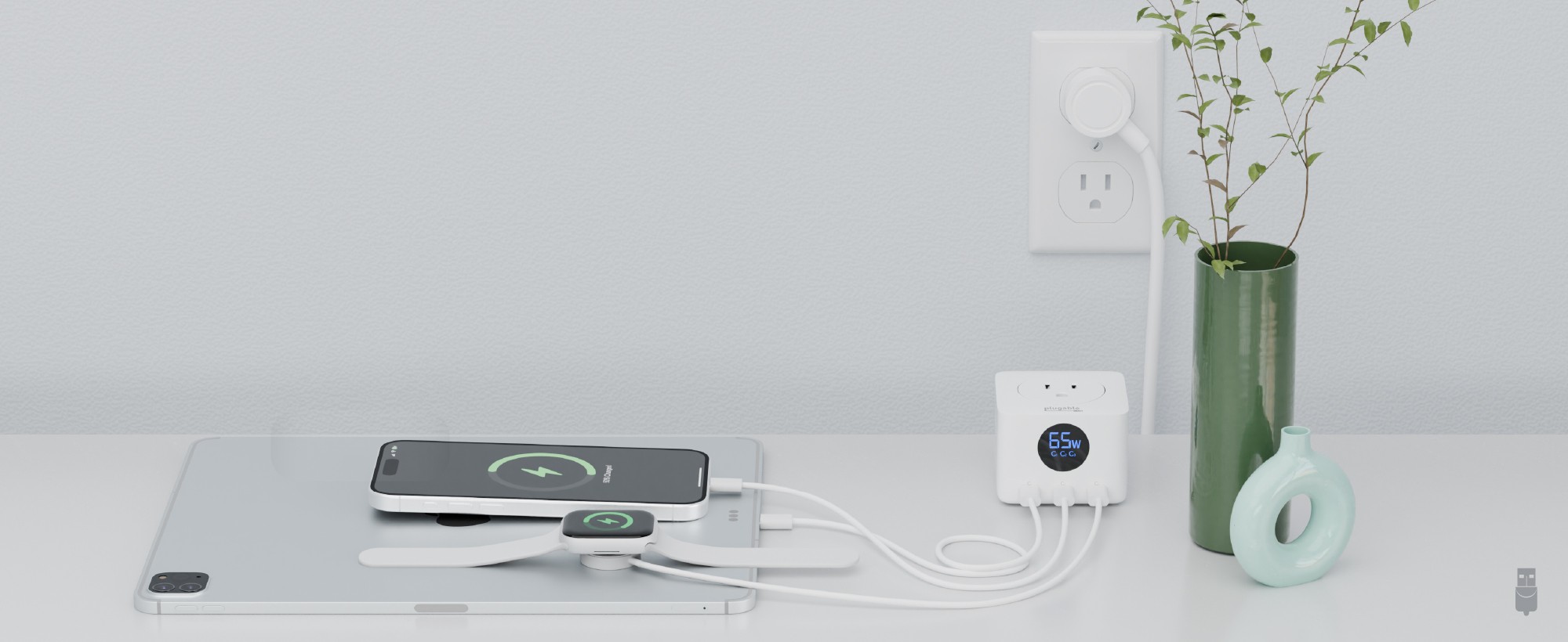 From the smallest earbuds to the largest laptops, power and charge up to six devices at once. Use the hook-and-loop cable tie to keep cords contained at your desk, or use it to keep the cable travel-friendly. Embrace the convenience and reliability of the Plugable multiplug wall outlet with usb ports for all your charging needs.