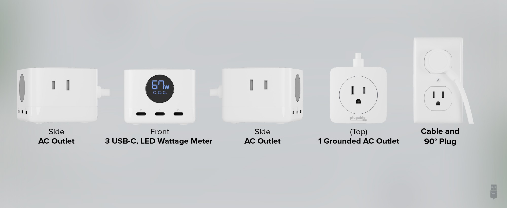 The Plugable outlet extender with USB C goes beyond charging your mobile devices, three power outlets give you room to plug in your larger devices like computers and monitors. And with a sturdy 1.55m (about 5 ft) cord equipped with a low profile right angle connection, the power is always right where you need it.