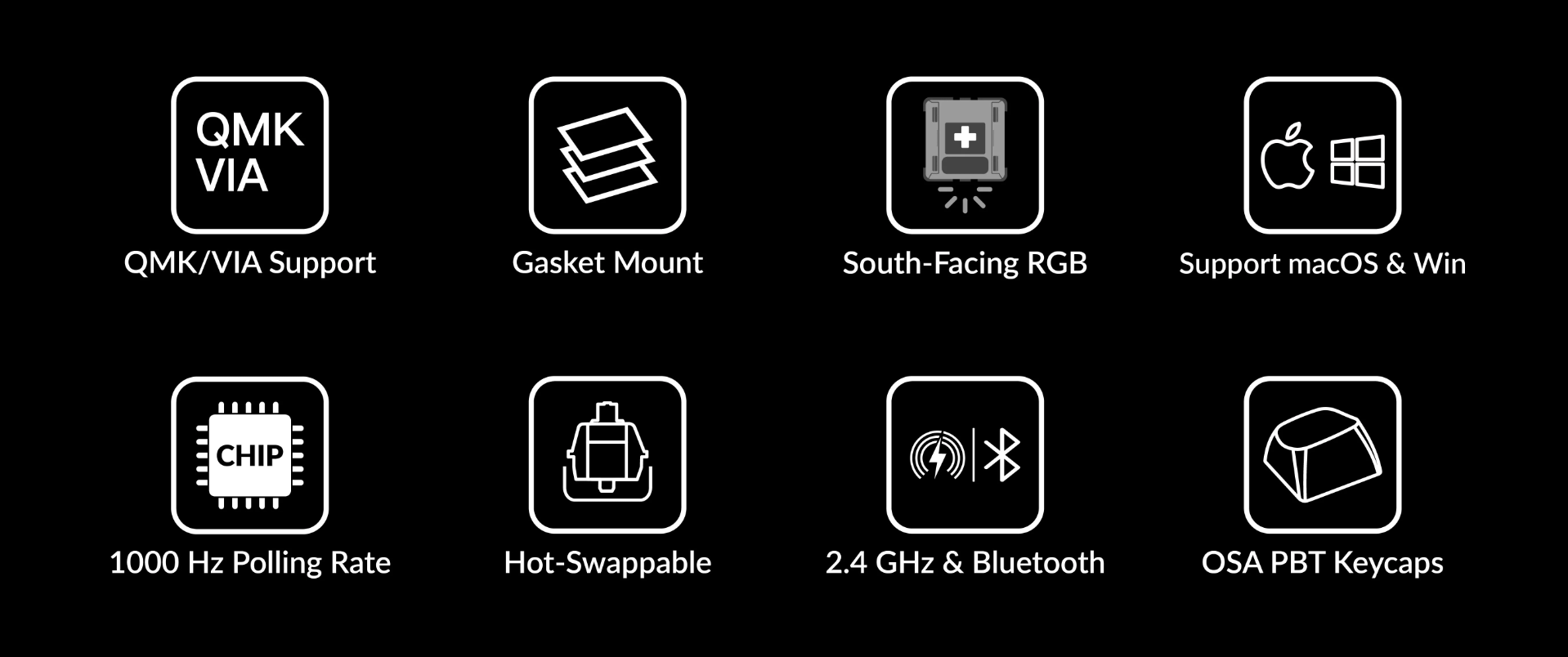 Our exclusive Gateron Jupiter mechanical switch (for the Fully Assembled version only) comes with a 3-pin design, its pre-lubed with a reliable Gateron quality standard with up to 80 million keystrokes lifespan. While their unique LED diffuser design offers high RGB backlight transmittance and softer backlight effect.