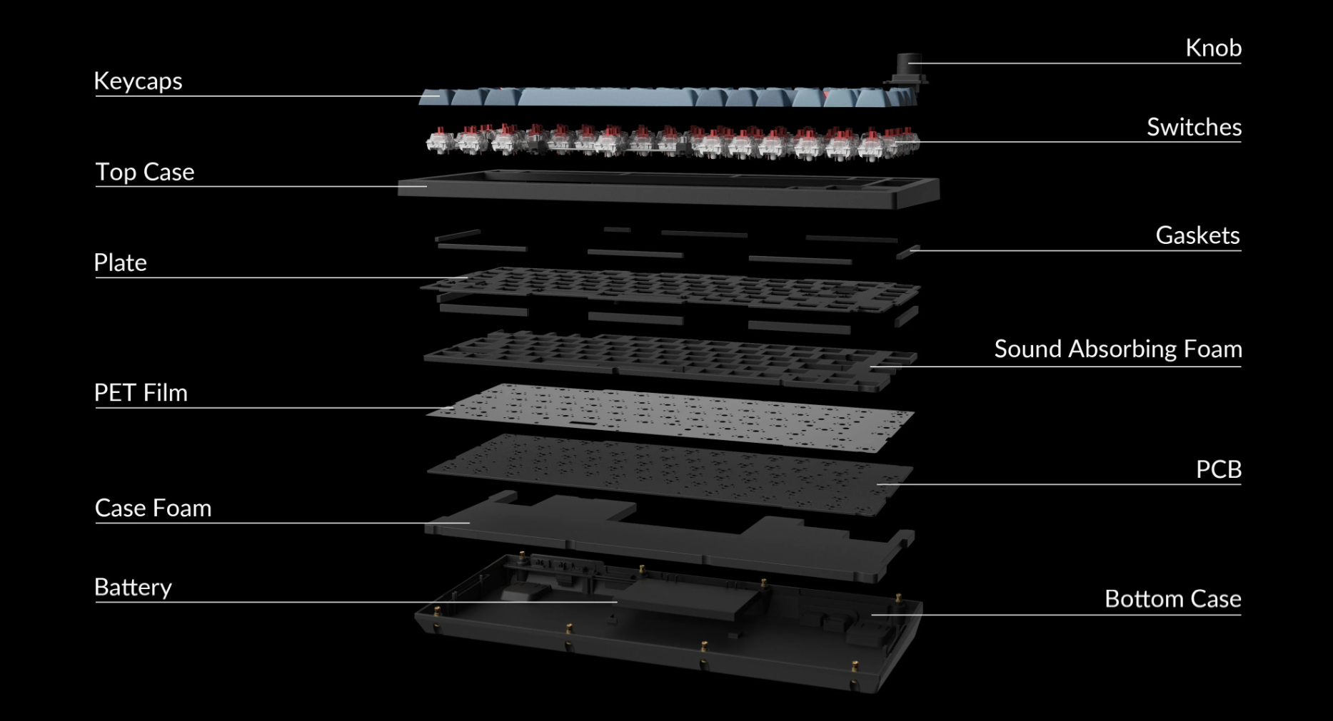 To build a fully customizable keyboard, we designed every component to be easily assembled so you can customize and adjust any or every parts the way you want.