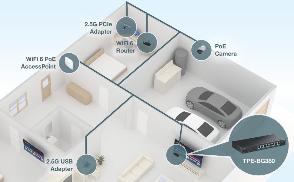 No configuration needed, simply connect network devices to the 2.5G multi-gig PoE++ switch
