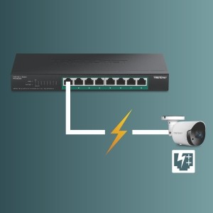 A 230W total PoE power budget on this 2.5G PoE++ switch supplies up to eight PoE/PoE+/PoE++ devices with up to 95W per port