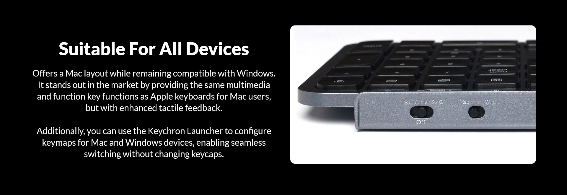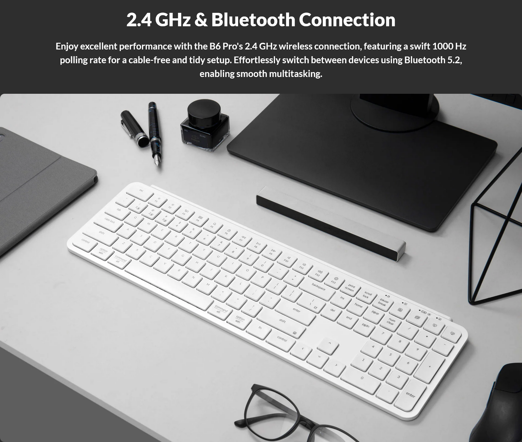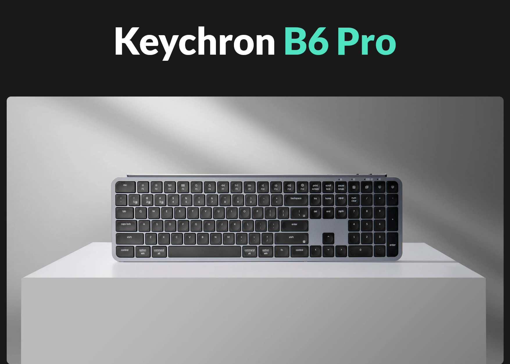 The Keychron B6 Pro is a lightweight, ultra-thin and full-size wireless keyboard with a 1,200-hour long battery life. It supports 2.4GHz wireless, Bluetooth, and wired modes, easily connecting to phones, tablets, PCs, and Macs. With ZMK customization, it offers tailored settings for home, office, or travel.