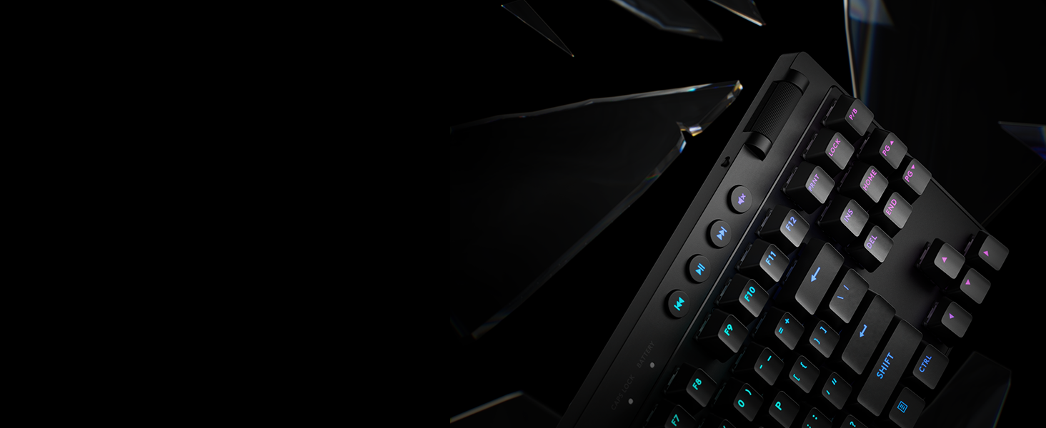 Designed for pros to win championships, with game mode control, dual-shot PBT keycaps, standard keyboard layouts for 3P compatibility, and LIGHTSPEED, Bluetooth, and USB connectivity options