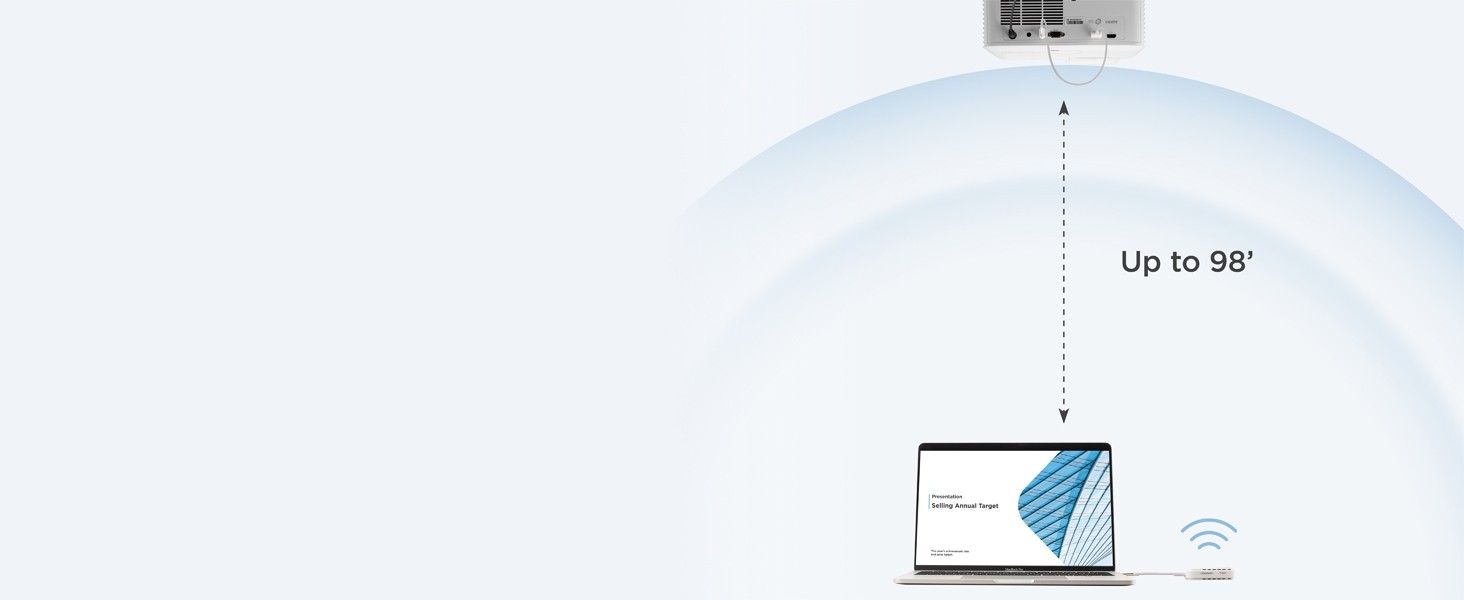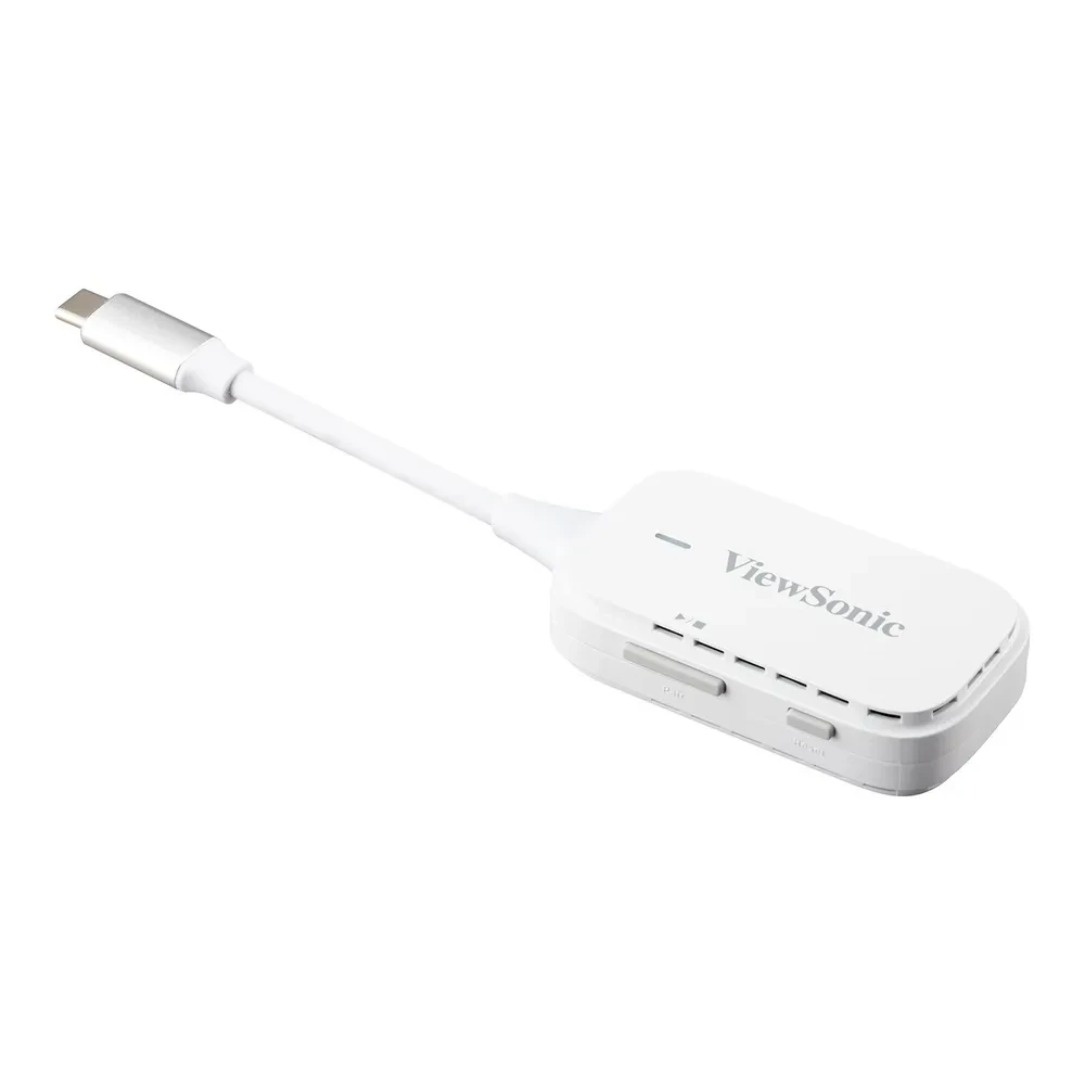 Make presentations easier and wire-free with the ViewSonic ® PJ-WPD-700 wireless casting solution. This plug-and-play wireless dongle empowers users to seamlessly cast content from their mobile devices with no network setup, software installation or app downloads required. Peer-to-peer connection technology ensures transmission stability, security and streamlines guest access for simplified content sharing. Enjoy up to 1080p Full HD resolution with minimal latency. Watch DRM-protected content from platforms such as Netflix, Disney+ or HBOMax. Plus, with a transmission range of up to 98 ft., this casting kit eliminates the need to purchase expensive extra-long HDMI cables. A USB-C port ensures that this wireless casting dongle is compatible with most devices, including the iPhone 15. Pair your device with up to eight transmitters via USB-C port.