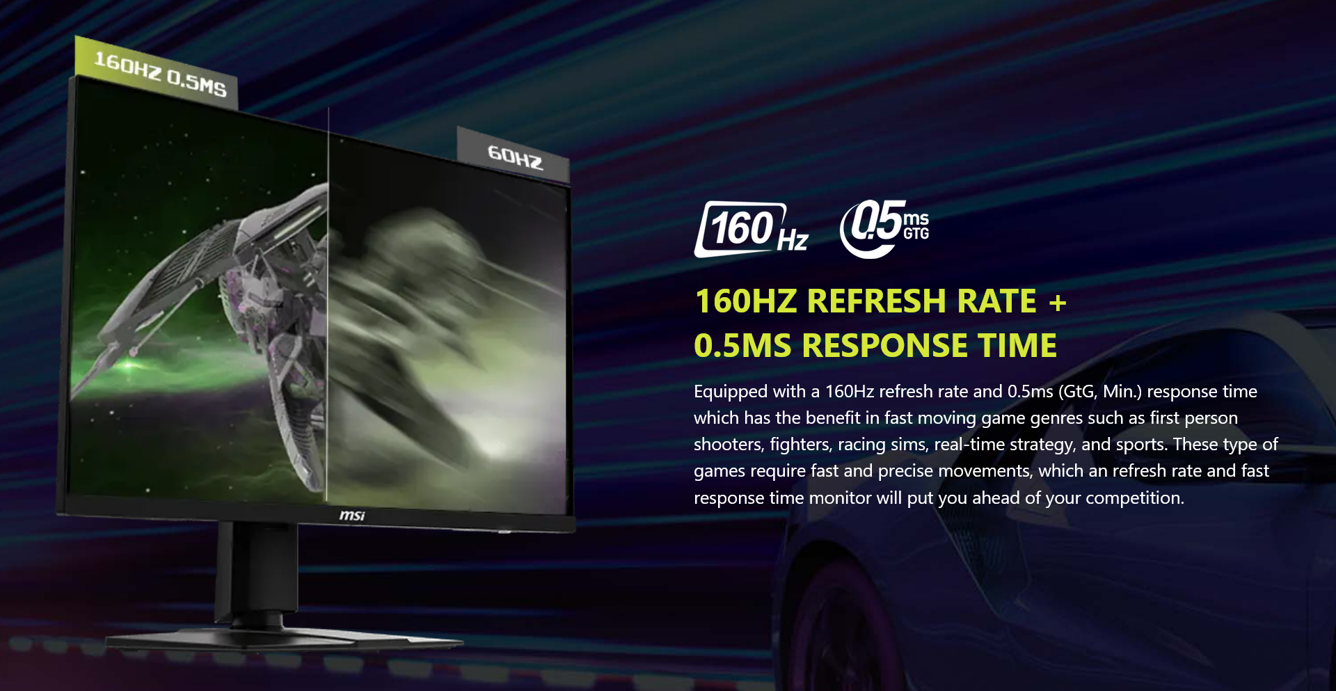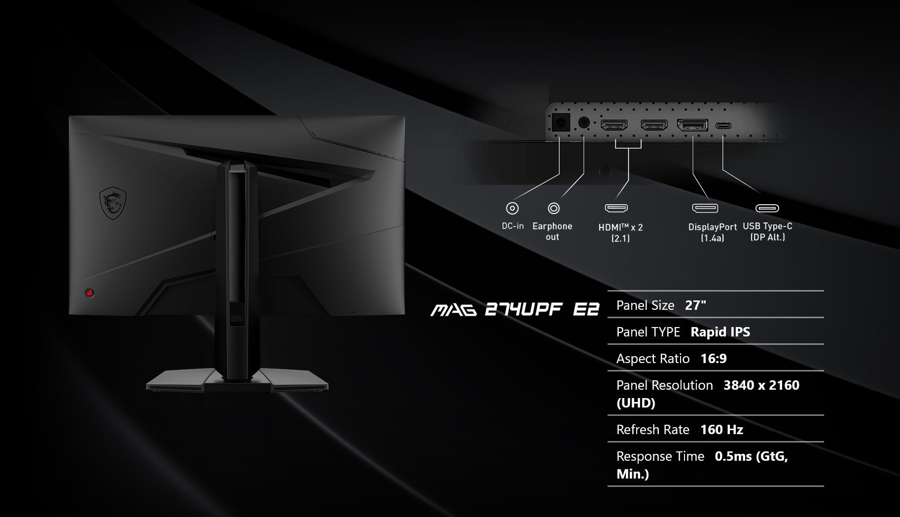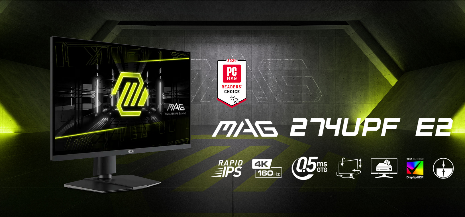 Visualize your victory with MSI MAG 274UPF E2 gaming monitor. Equipped with a 160Hz Refresh rate, MAG 274UPF E2 will give you the competitive edge you need to take down your opponents. The 4K UHD (3840x2160) high resolution will let you experience the mesmerizing images. Enjoy extremely smooth, tear-free gameplay with built-in Adaptive-Sync technology when paired with your GPU for ultra-smooth gameplay.