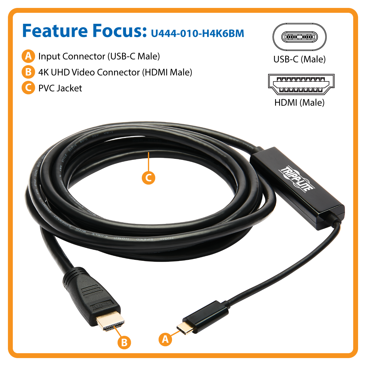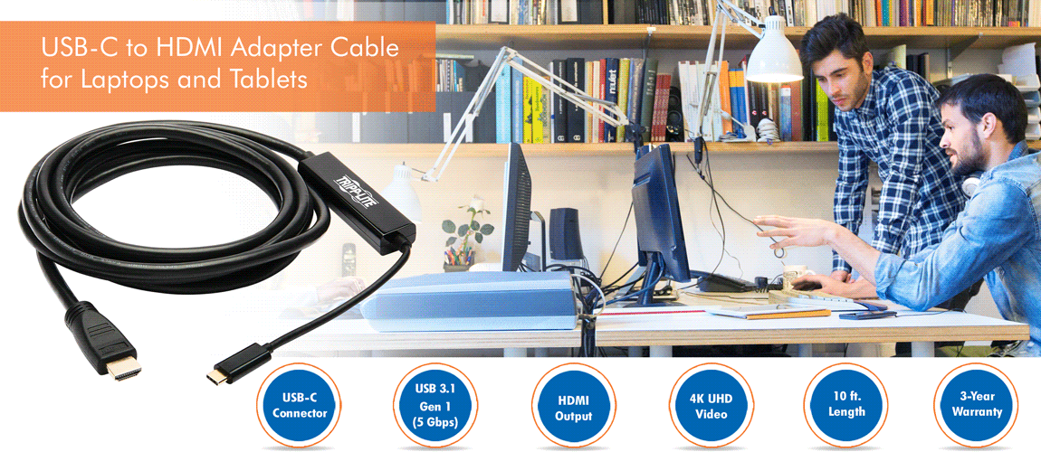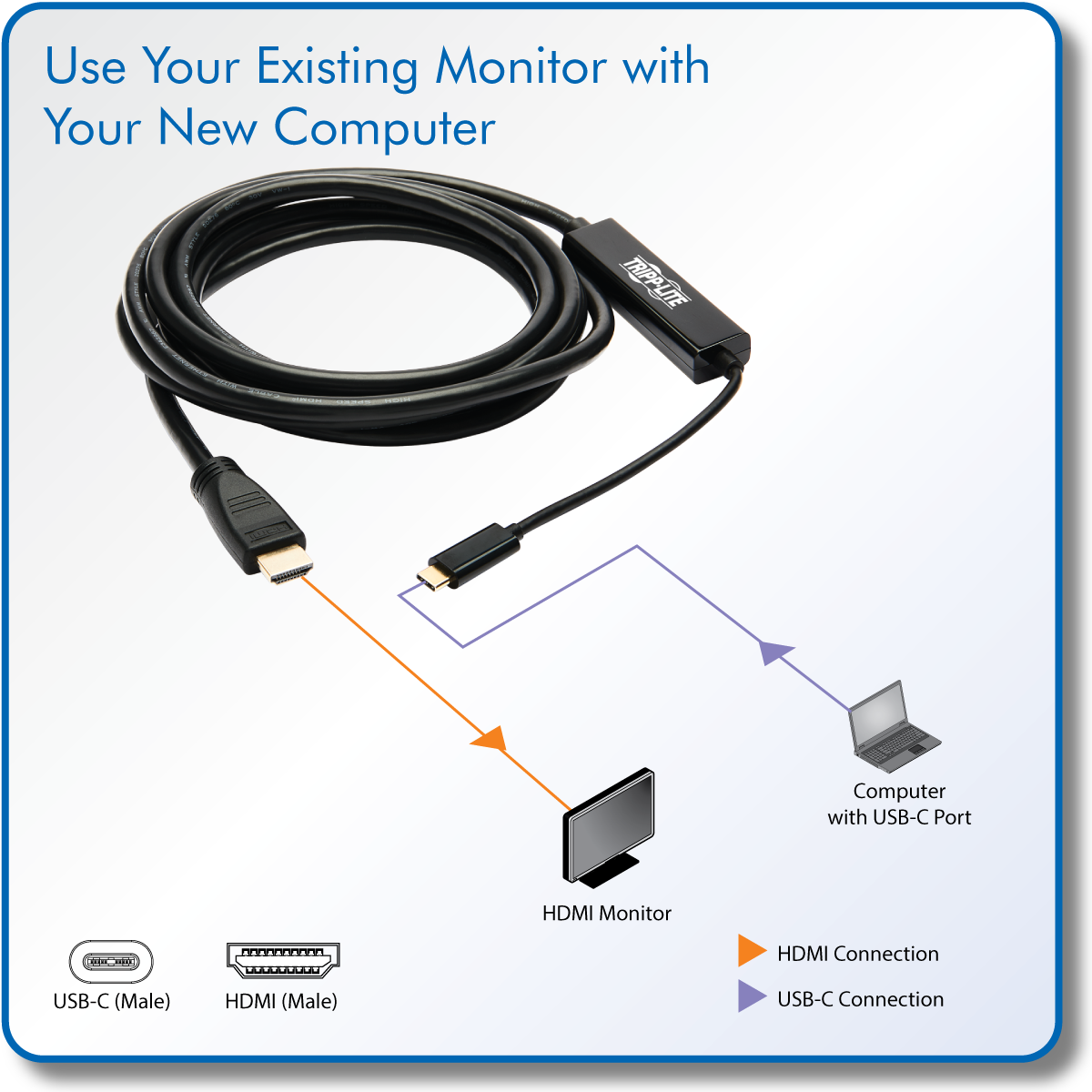 Newer tablets, laptops, Chromebook™ and MacBook® notebooks, desktop computers and even smartphones often have only USB Type-C™ ports for connection to peripherals. This cable directly connects a USB-C™ or Thunderbolt™ 3 port on a video source that supports USB DisplayPort Alternate Mode (Alt Mode) to an HDMI television, monitor or projector.