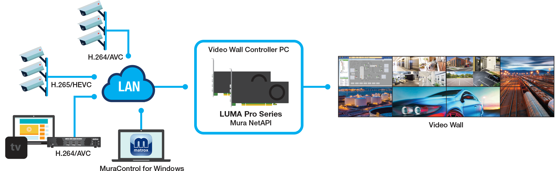 LUMA Pro Series allows you to create powerful IP-based video walls with fewer components and smaller systems with the built-in MURA SDK media codec engine.