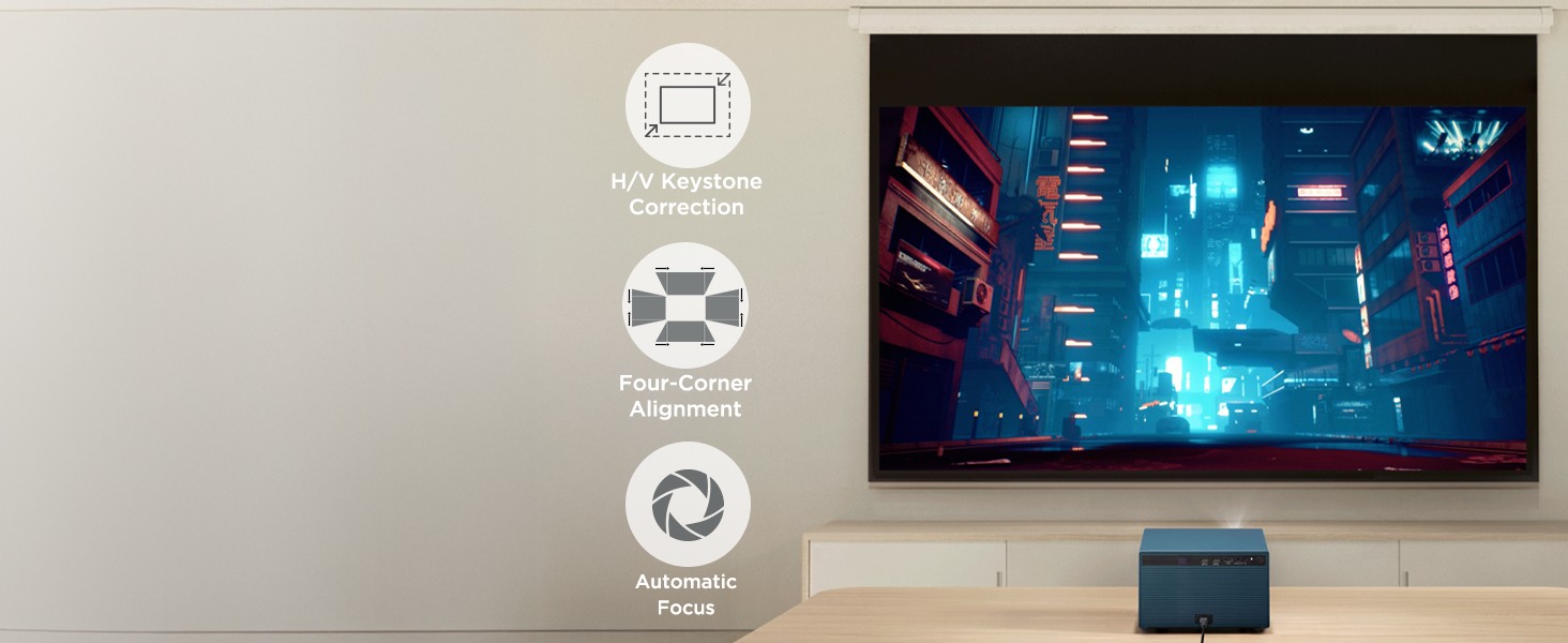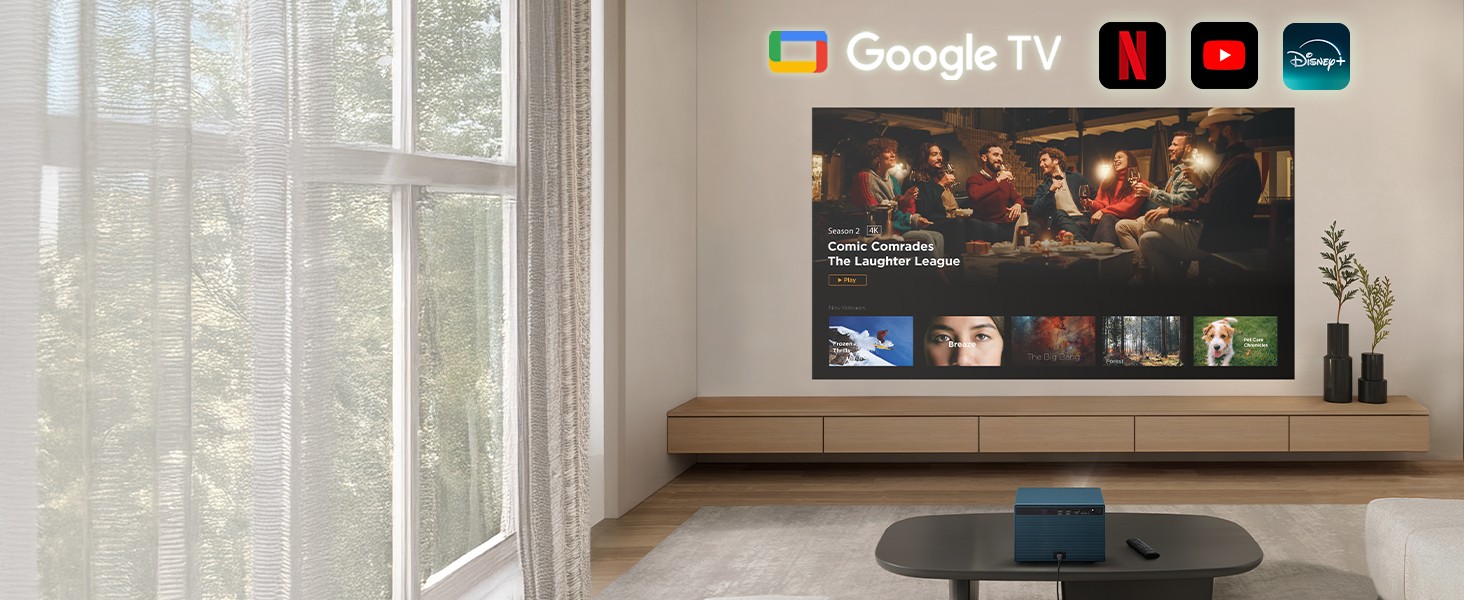 Upgrade your entertainment experience with the ViewSonic ® LX60HD smart LED projector. Featuring built-in Google TV software, this 1080p Full HD projector makes it easy to watch your favorite movies and shows on screens up to 140” without having to purchase an external dongle. And with features like auto H/V keystone correction, four-corner adjustment and obstacle avoidance, the LX60HD helps significantly streamline your setup no matter where you place your projector. A sealed engine design prevents dust and moisture from entering and ensures long-term durability and image clarity for years to come. Enjoy wireless screen mirroring with built-in Wi-Fi and Bluetooth for easy connectivity.