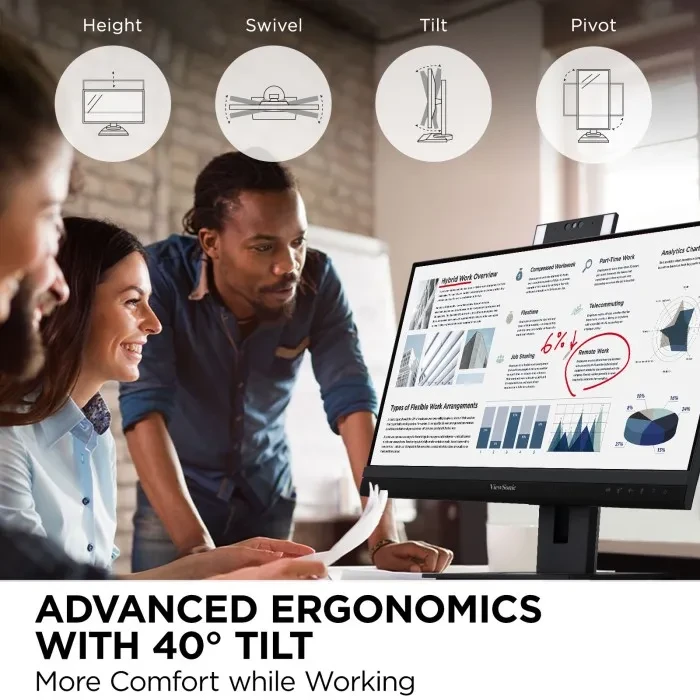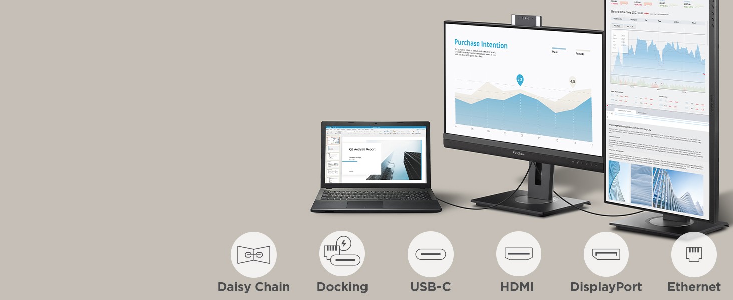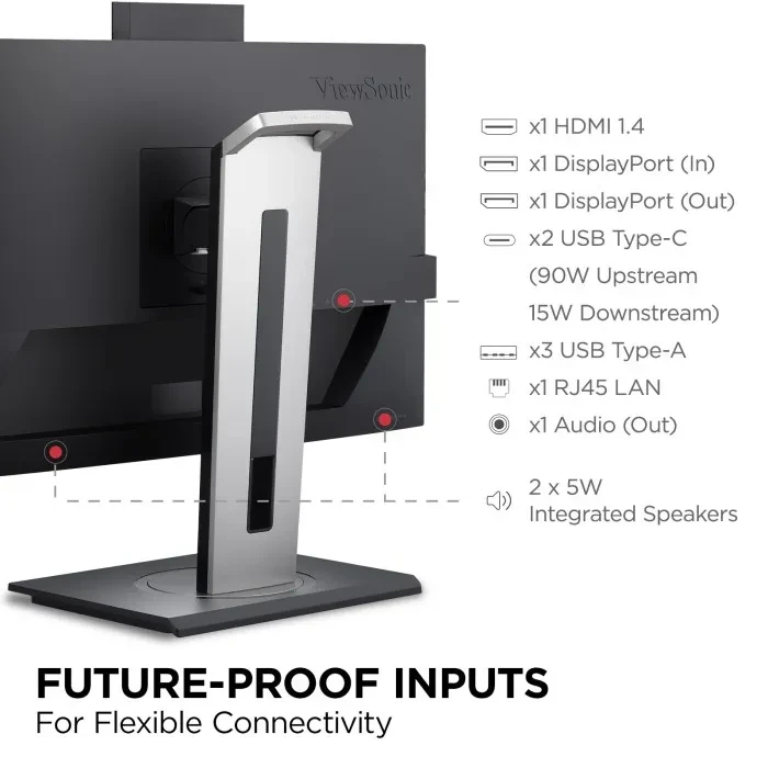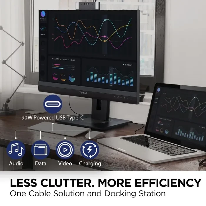 ViewSonic VG2757V-2K video conferencing monitor is a docking monitor with premium features such as a pop-up webcam that will help maintain productive meetings whether in the office or working from home, with secure features like a Windows Hello compatible IR camera and Zoom certification for peace of mind on security and reliable conferencing. Premium webcam features to improve visual and audio aspects of video calls such as built in LED lighting, and powerful speakers, along with a QHD 2560 x 1440p resolution for stunning visuals. The IR camera allows for secure and easy sign-on with Windows Hello. Full docking functionality (daisy chain, USB-C single cable connectivity with 90W power delivery, reliable ethernet connectivity) simplifies accessories needed to deploy for IT infrastructure.