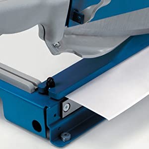 is designed for precision trimming of paper, cardstock, and matboard. It features a ground self-sharpening blade, a rotating guard to keep fingers safe, and an automatic clamp to hold work securely. This German engineered cutter is ultra-precise and ideal for trimming thicker material.