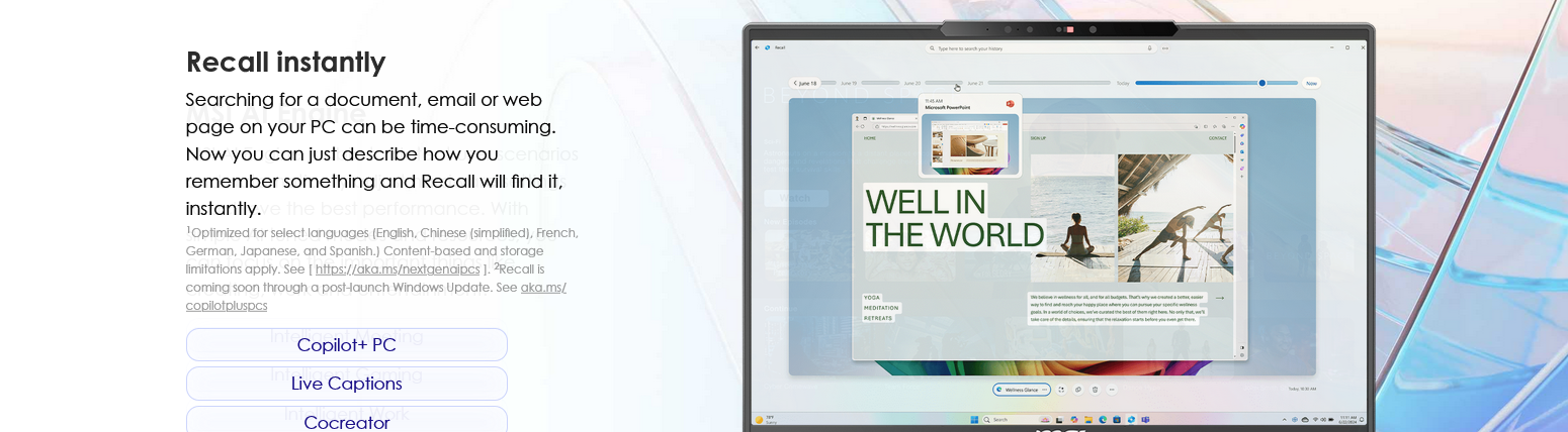 *Copilot is available in select global markets and will be rolled out to additional markets over time. .Copilot on Windows 10 functionality is limited and has specific system requirements. *Copilot Microsoft 365 sold separately. Subscription required.