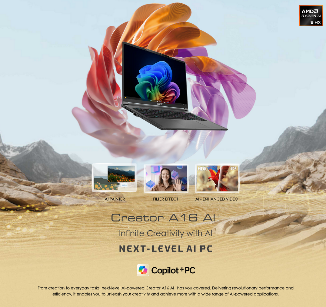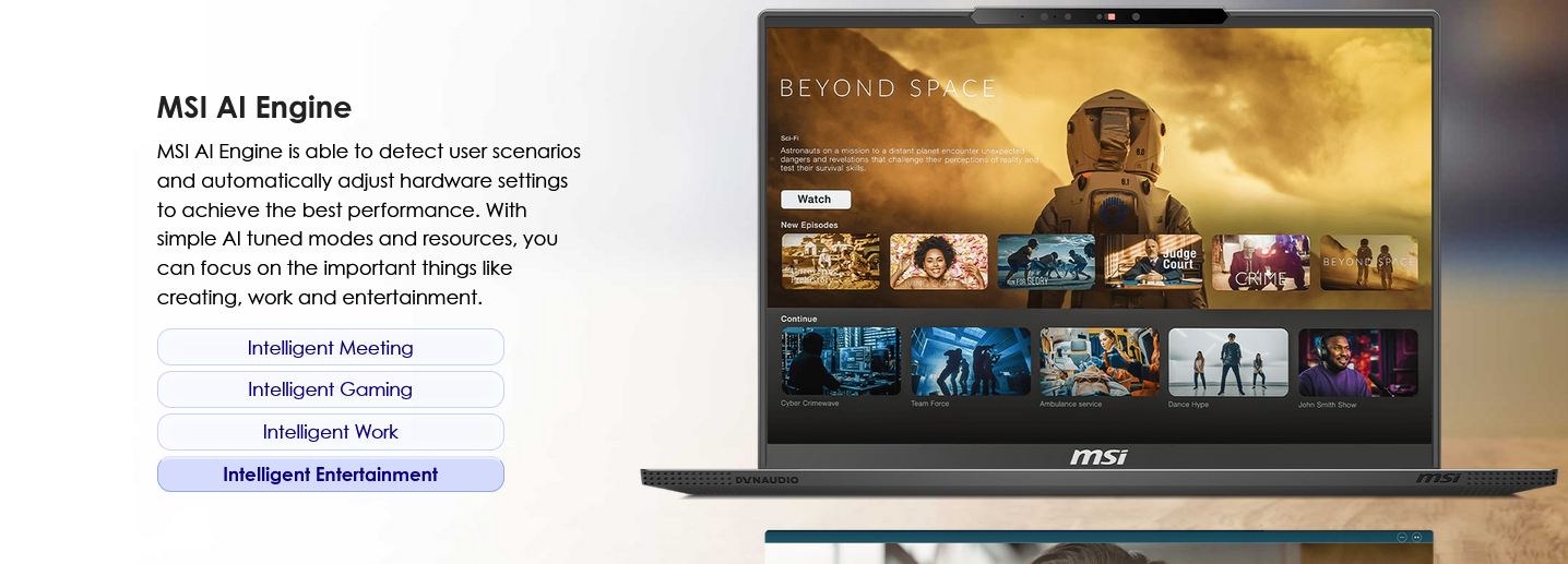 Manifest your imagination - Copilot works with you to write, edit, summarize, create content - and even give suggestions. MSI AI Engine automatically tunes your laptop to the most optimal settings. Harness the AI power anytime, anywhere.