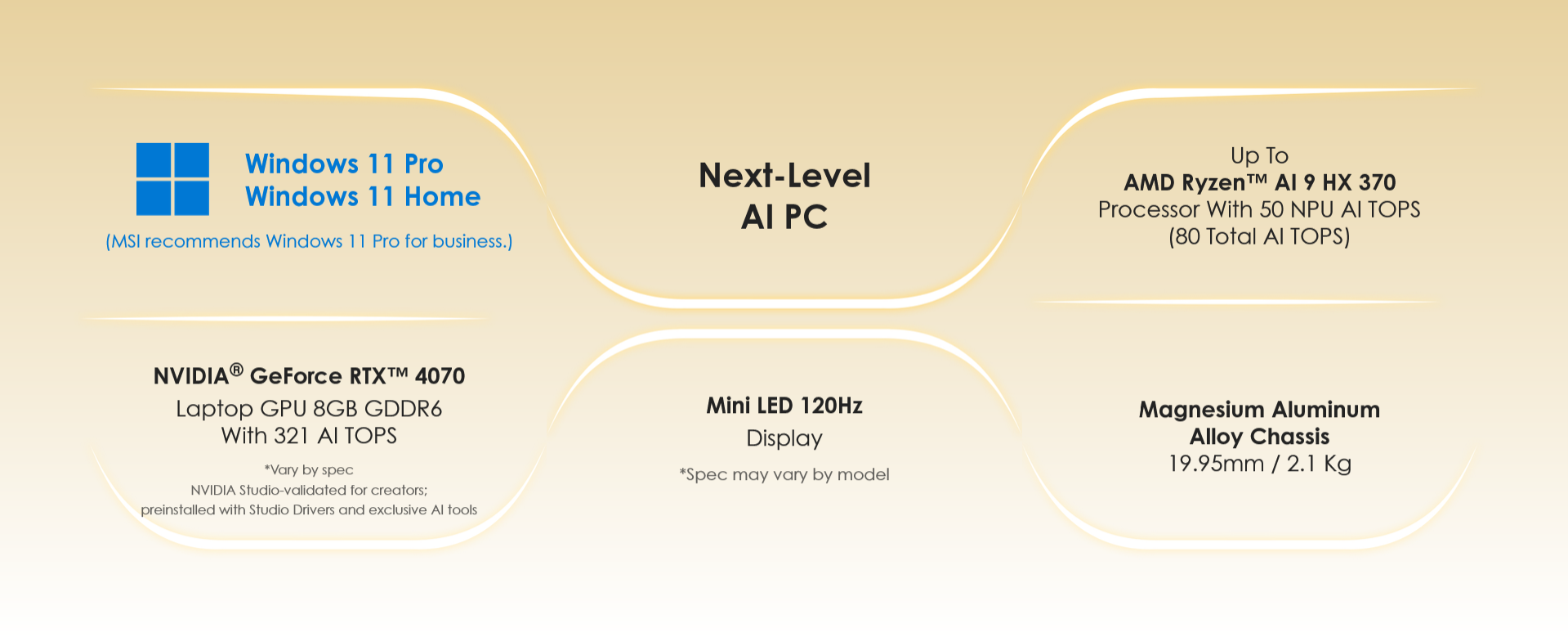 Manifest your imagination - Copilot works with you to write, edit, summarize, create content - and even give suggestions. MSI AI Engine automatically tunes your laptop to the most optimal settings. Harness the AI power anytime, anywhere.