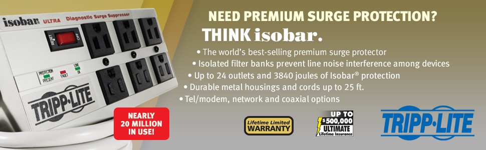 Devices connected to the same surge suppressor can interfere with one another's performance—for instance when office equipment or household appliances (printers, copiers, blenders, vacuums, fans) degrade TV picture and sound quality. The Isobar is the only surge suppressor with internal barriers (called isolated filter banks) that prevent disruptive line noise from causing A/V distortion, computer lock-ups, data errors and similar problems. Isolated filter banks ensure that peripheral devices and appliances don't degrade the performance of computers and sensitive A/V components.