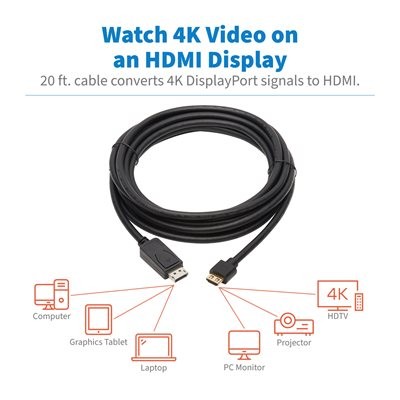 Tripp Lite’s DisplayPort to HDMI Adapter helps you transmit digital audio and 4K video from the DisplayPort 1.2 output on your desktop computer, laptop or other compatible device to a 4K HDMI-enabled television, monitor or projector. It’s ideal for working in high-definition photography, videography or cinematography, as well as streaming video for digital signage in crystal-clear 4K.