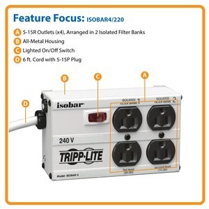 For peace of mind, the ISOBAR4/220 comes backed by a lifetime warranty. The ISOBAR4/220 is also manufactured in compliance with strict RoHS specifications, reflecting Tripp Lite’s commitment to environmental responsibility.