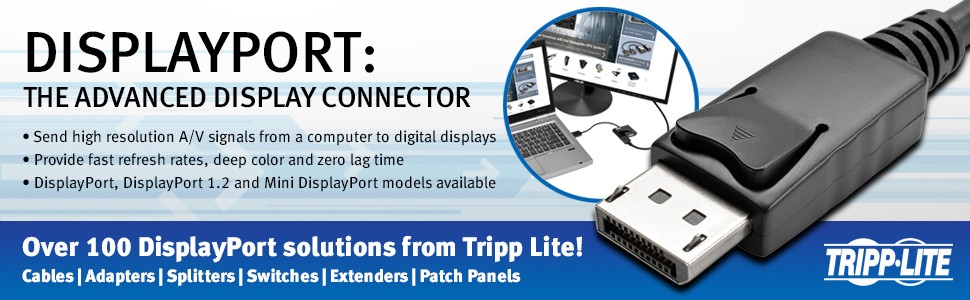 The three-foot P139-003-DP-V2B supports UHD video resolutions up to 3840 x 2160 (4K x 2K) at 60 Hz, including 1080p. It’s recommended for displaying crystal-clear video on a large monitor or digital sign in schools, office buildings, churches, hotels, restaurants, conference rooms, trade shows and anywhere else you need to show UHD video. The cable is compliant with DisplayPort 1.2a, DPCP and HDCP 2.2.