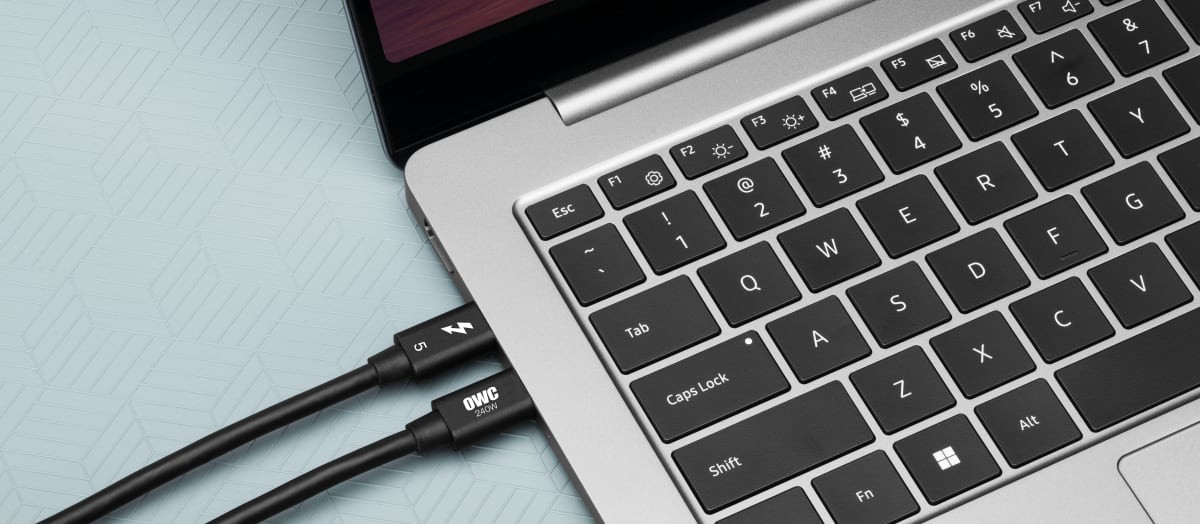 Even if you don't have a Thunderbolt 5 computer, you won't get left behind by the OWC Thunderbolt 5 Cable. No matter what Thunderbolt 4, Thunderbolt 4, or USB-C interface your computer, tablet, or device has, you'll rev it up to its maximum speed capability through the OWC Thunderbolt 5 Cable's universal USB-C connector.
