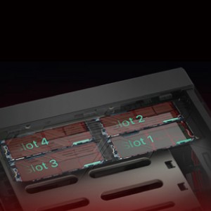 The AS54 series is equipped with four M.2 slots for NVMe SSDs to accelerate tasks that require high random IO performance to save unbelievable amounts of time in applications that can take advantage of SSDs, such as content creation. Each M.2 slot for NVMe SSDs is tool-free for easier installation while the cooling vents ensure SSDs run at optimum performance.
