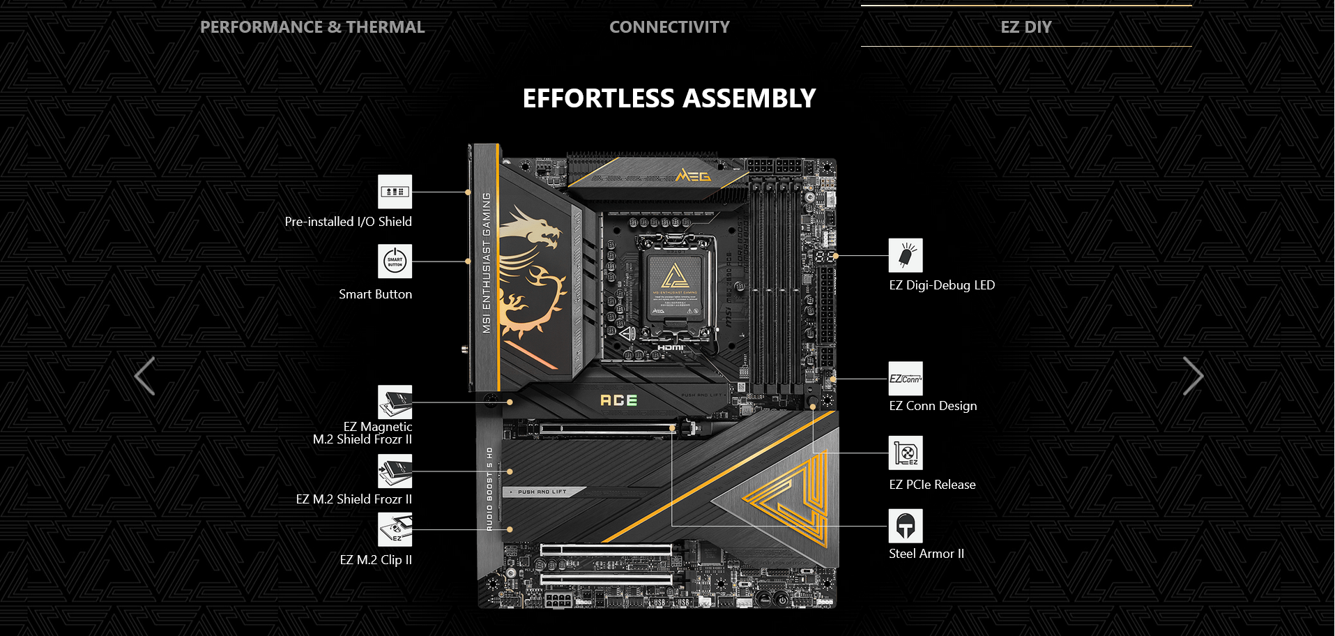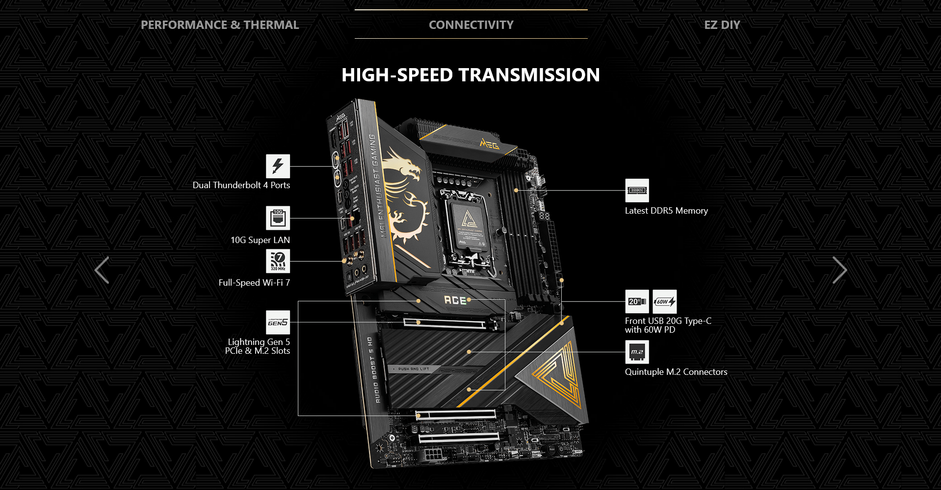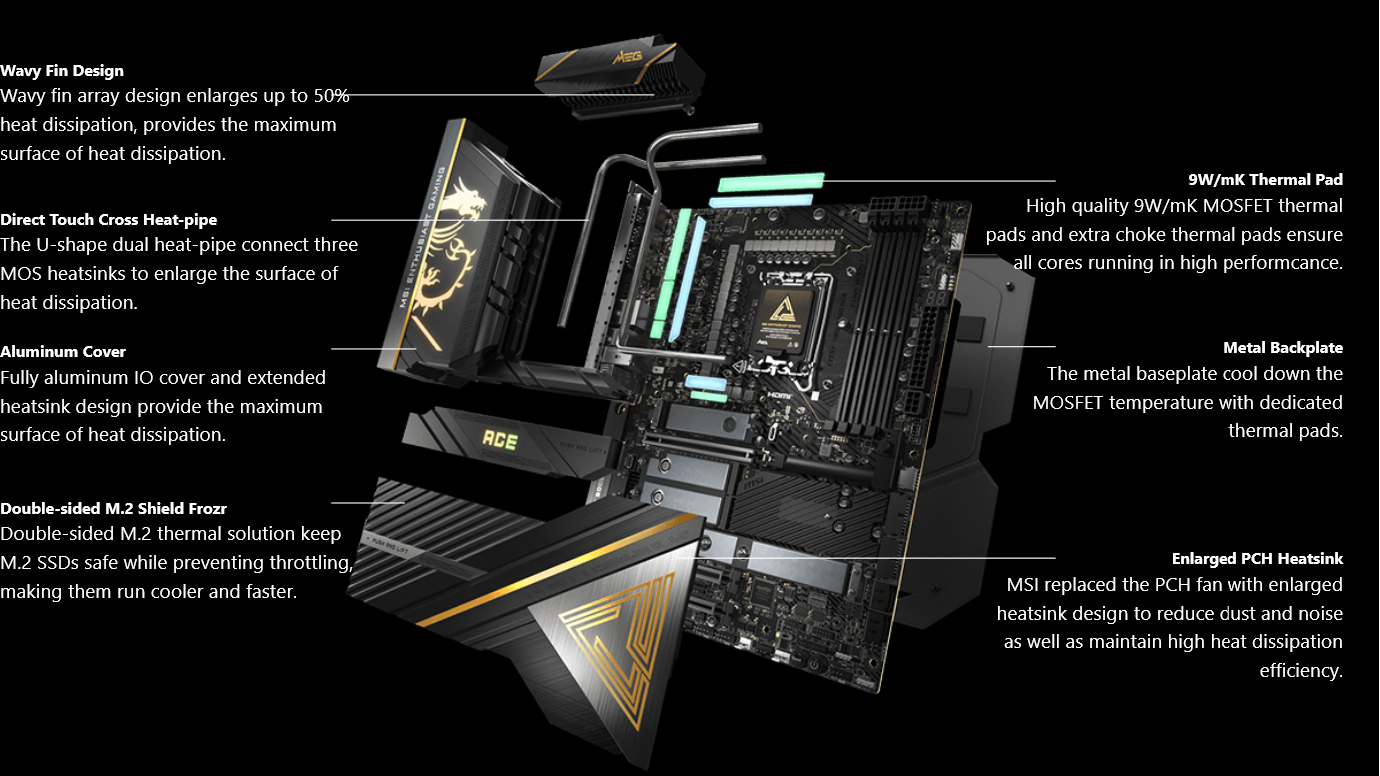 With mythological power, divine imagery, and ancient lore woven into every aspect of the product line, the MEG series delivers an immersive and captivating gaming experience that is unmatched in sophistication and performance. It transcends being just a collection of products; it represents the pinnacle of gaming luxury, revolutionizing the gaming world and becoming the top choice for discerning gamers worldwide.