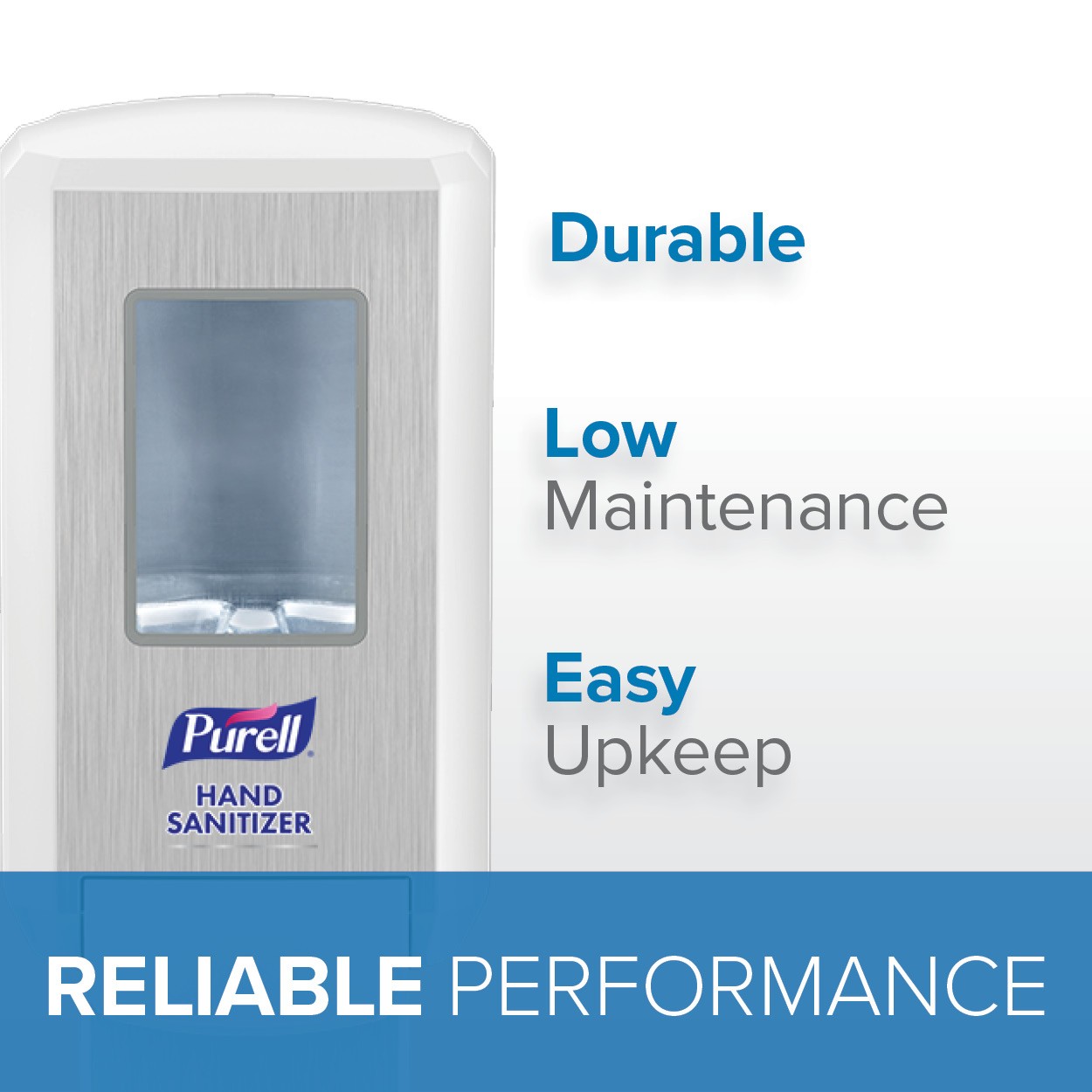 When you adopt the PURELL CS4 Manual Dispenser with PURELL Advanced Hand Sanitizer refills, you get reliable performance with a trustworthy hand hygiene product. PURELL Advanced Hand Sanitizer kills 99.99 percent of germs that may cause illness, while maintaining skin health. The CS4 dispenser is ideal for high-traffic areas where frequent hand sanitizing is needed or where soap and water are not available. So, when it matters, count on America's #1 hand sanitizer (1).