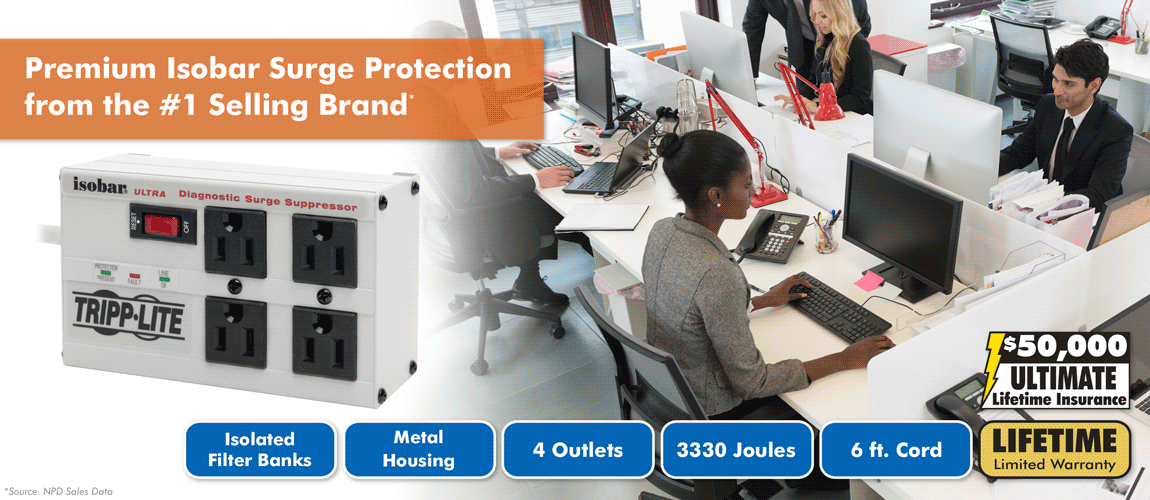 With independently verified surge-stopping power fully tested and certified to meet strict UL standards, this Tripp Lite Isobar® surge protector is the smart choice to protect your valuable equipment. Compared to other surge protectors, Isobar models have a substantially larger and more robust surge-blocking architecture.