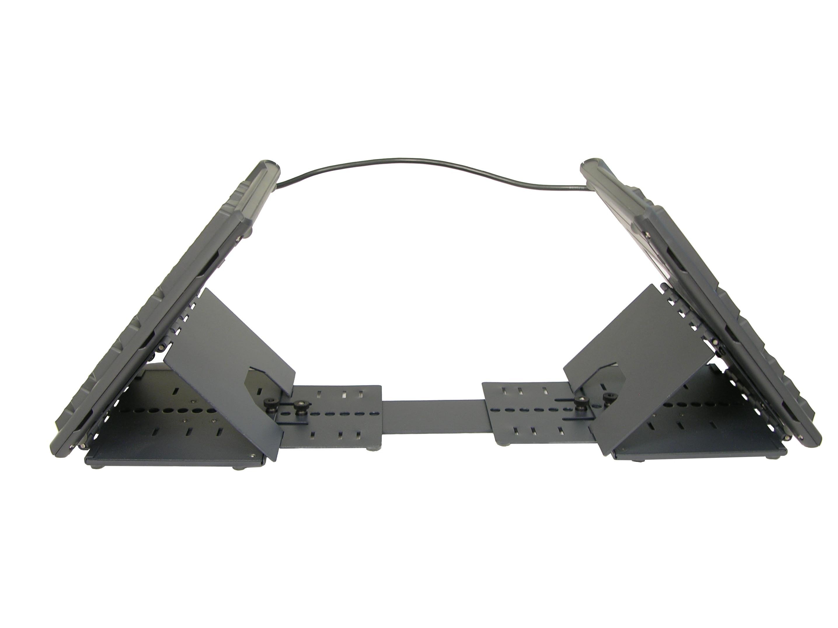 Tenting angles may be independently set for each keying module in the range of 20 to 90 degrees, in 10 degree increments. Left/right separation is limited only by the length of the keyboard’s linking cable. The standard 9″ separation is adequate for most users, but the 20″ linking cable is recommended for greater flexibility. Keyboards with the 9 inch linking cable may be upgraded to the 20″ cable, please contact Kinesis technical support for further information.