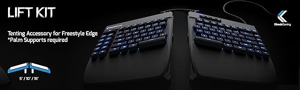 Attach the Lift Kit to your Freestyle Edge to “tent” the keyboard 5˚, 10˚, or 15˚. Tenting the keyboard puts your wrists in a more natural position which reduces hand and arm strain. Use the Lift Kit for maximum comfort during extended gaming sessions. Once you tent, you’ll never want to use a flat keyboard again!
