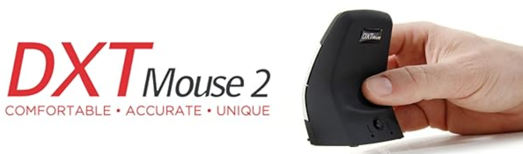 The new DXT 2 vertical mouse is a compact ergonomic mouse which has been expertly designed by a team of leading UK physiotherapists and ergonomists. The DXT 2 promotes a neutral (more vertical) wrist posture while allowing the hand to work with a light touch fingertip hold providing precision cursor control. The ambidextrous shape of the DXT2 allows for either right or left handed use.