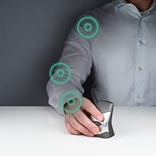 Forearm PronationThe DXT’s semi-vertical design allows the mouse to be held from a more natural and “functionally neutral” position with the hand gently resting on its side at an angle of 50˚ to 70˚. Studies show that most comfortable position for mouse operation is when the thumb is higher than the little finger (anywhere between 10˚ and 90˚of rotation). |