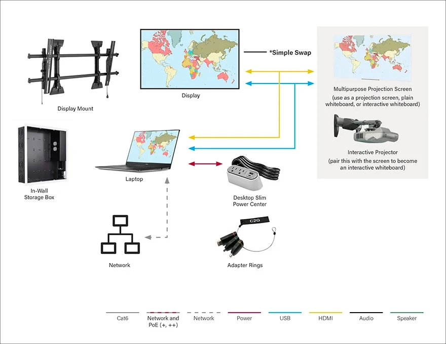ClickConnect® Tool-Free Latching creates an audible click when the screen safely engages with the mount. A built-in cable stand allows easy access under the screen. Tuck Quick Store cords out of sight with the magnetized end.