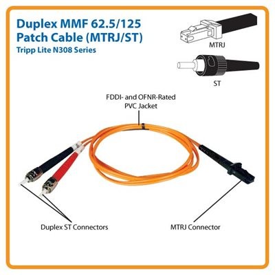 The N308-010 comes with widely compatible MTRJ and dual ST connectors that are thoroughly tested to ensure they meet Tripp Lite's stringent insertion loss standards. The connectors' edges are also beveled and color coded for easy and secure connection throughout your network.