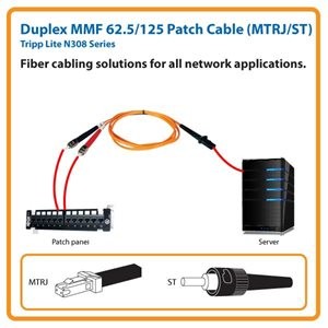 The N308-08M comes with widely compatible MTRJ and dual ST connectors that are thoroughly tested to ensure they meet Tripp Lite's stringent insertion loss standards. The connectors' edges are also beveled and color coded for easy and secure connection throughout your network.