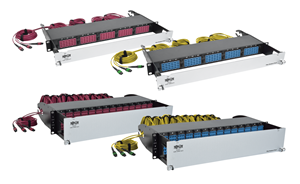 A typical 40 Gb switch has 10 Gb devices connected to about half of its ports. Tripp Lite breakout fiber patch panels come in two sizes to accommodate different switch sizes.
