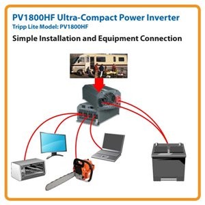 Are you tired of filling heavy gas cans? Are you looking for a clean, reliable alternative to a portable generator? The PV1800HF PowerVerter® Ultra-Compact Inverter is the solution you seek! The PV1800HF powers the equipment you commonly use at home or work—power tools, portable lighting, notebook computers and more—wherever life takes you. It's the ideal power solution for RVs, commercial and fleet vehicles, emergency vehicles, remote sites and any other application that requires a clean, quiet AC power source. The PV1800HF efficiently converts DC (battery) power into 120V AC (household) power to run any type of equipment, from power tools to computers. And unlike portable generators, the PV1800HF requires no fuel and produces no noise or fumes. With its 1800-watt capacity and four AC outlets, this inverter can power multiple items of equipment with ease. The PV1800HF also provides DoubleBoost™ capability to support power-hungry equipment start-ups.
