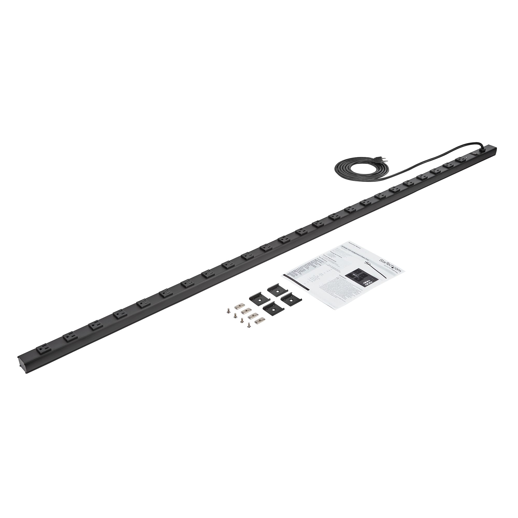 This 24 outlet rackmount power strip provides a 0U solution for your rackmount equipment and fits most 42U racks and equipment cabinets. The 10ft power cord provides plenty of reach to power outlets, and the 24 evenly spaced outlets help keep power cabling clean and efficiently routed.