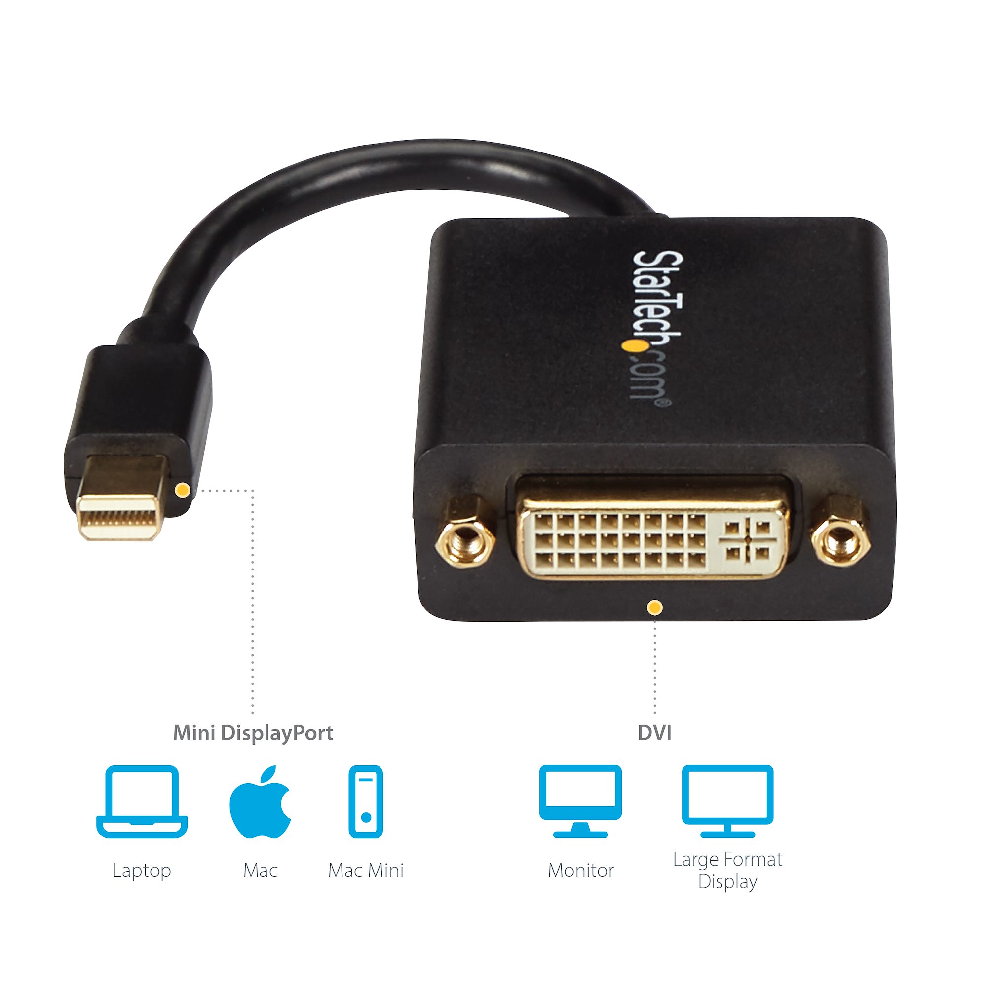 The StarTech.com MDP2DVI Mini DisplayPort DVI Adapter Cable offers a cost-effective DVI/Mini DisplayPort link, letting you connect a DVI computer monitor to a device with a Mini DisplayPort output while saving the expense of upgrading the monitor for compatibility. This Mini DisplayPort adapter is the perfect accessory for any of your MacBook