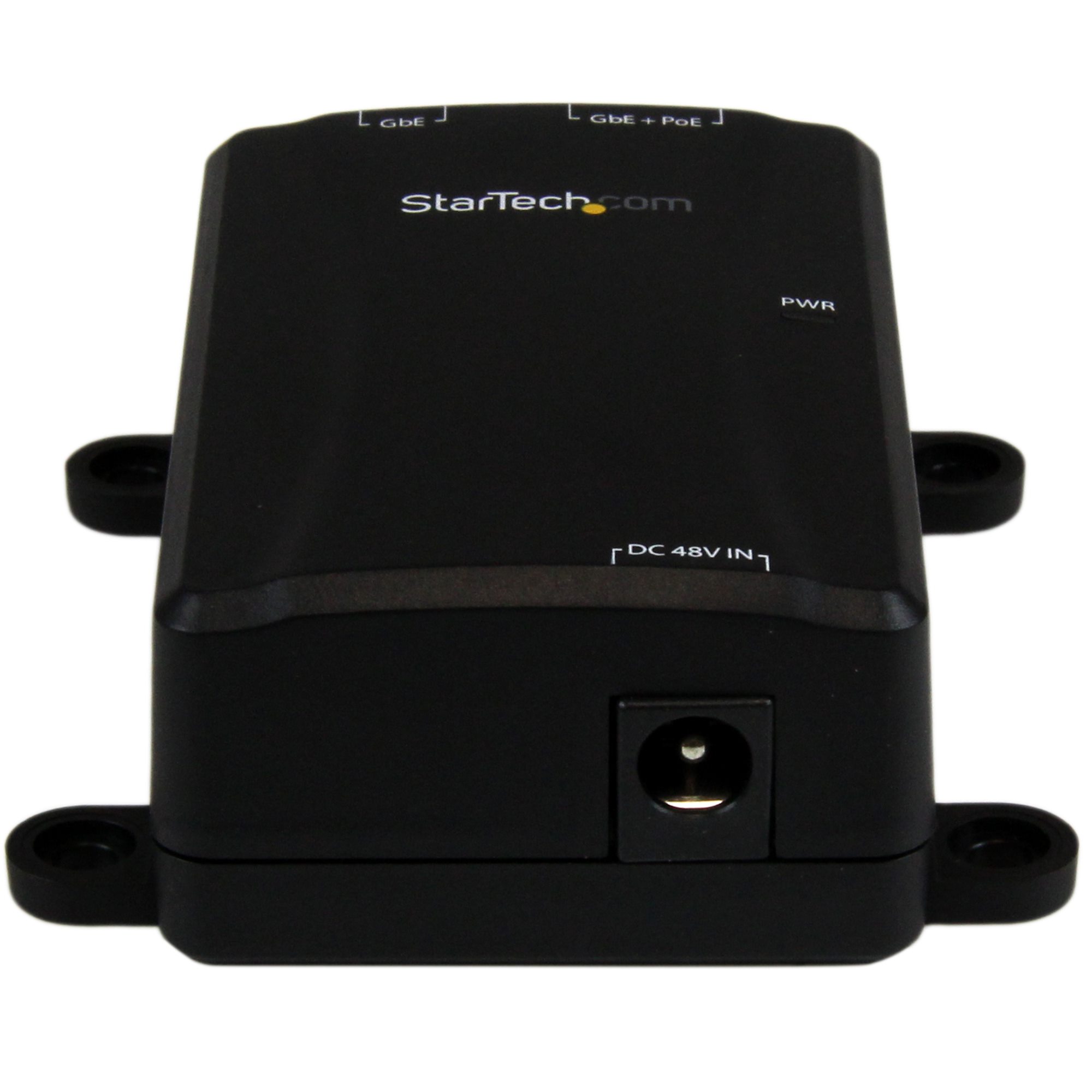 This Gigabit Power over Ethernet (PoE+) injector supplies power and data connectivity to a Gigabit PoE-compliant device using standard Ethernet cable, at distances of up to 100 m (330 ft.).